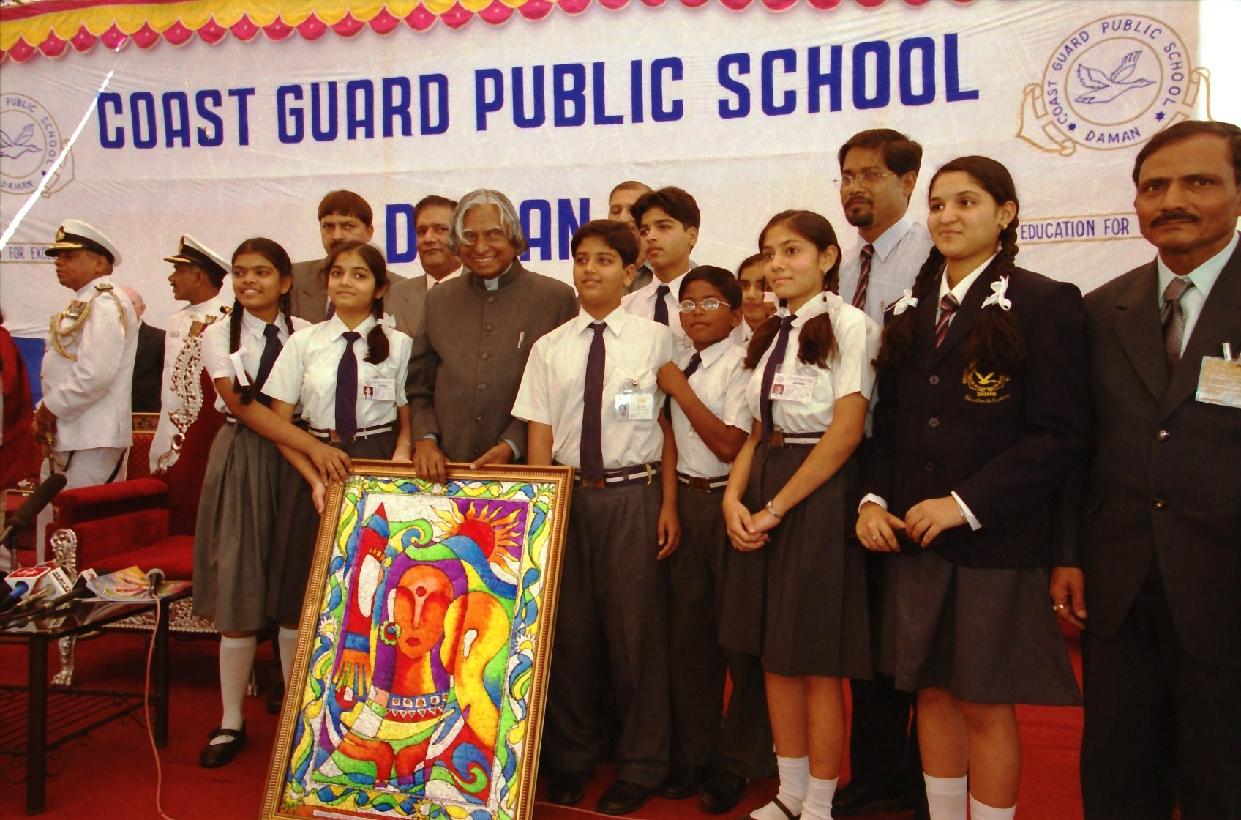 | Caption: | The President of India, Dr A P J Abdul Kalam interacting with the Students of Coast Guards Public School at Daman in Daman & Diu on Dec 01, 2002 |