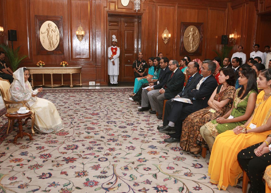 | Caption: | The President of India, Smt Pratibha Devisingh Patil interacting with Participants of the 12th Know India Programme for Diaspora Youth at Rashtrapati Bhavan In New Delhi on Oct 13, 2009 |