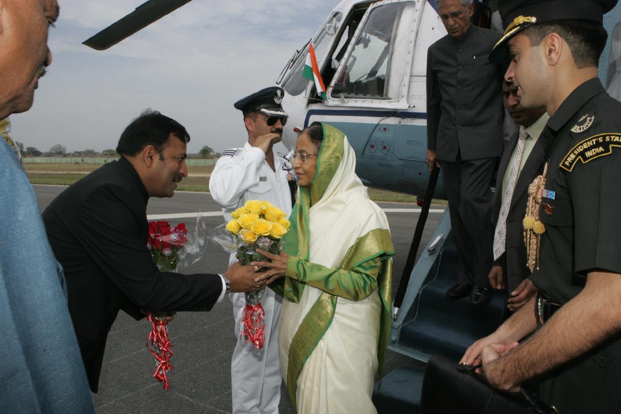 | Caption: | The President of India, Smt Pratibha Devisingh Patil arriving at IIT Helipad in Uttar Pradesh on March 06, 2010 |