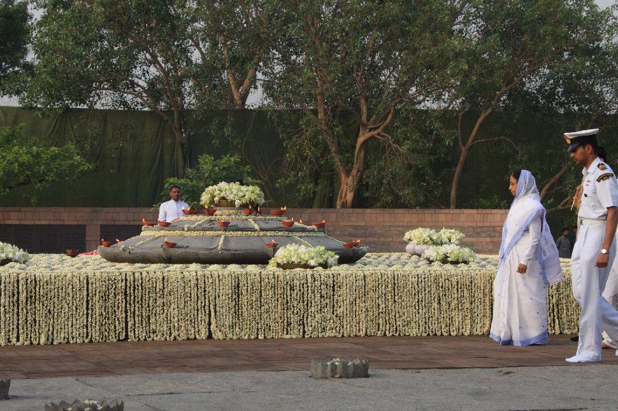| Caption: | The President of India, Smt Pratibha Devisingh Patil paying homage at the Samadhi of Late Prime Minister of India, Shri Rajiv Gandhi on his 18th Martyrdom Day at Vir Bhoomi in New Delhi on May 21, 2008 |