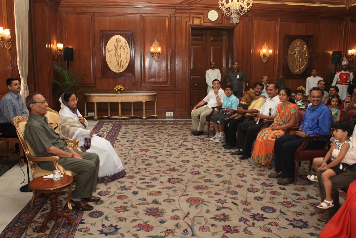 | Caption: | The President of India, Smt Pratibha Devisingh Patil interacting with Dr Sunil Raghuvanshi and others at Rashtrapati Bhavan in New Delhi on May 23, 2009 |