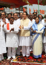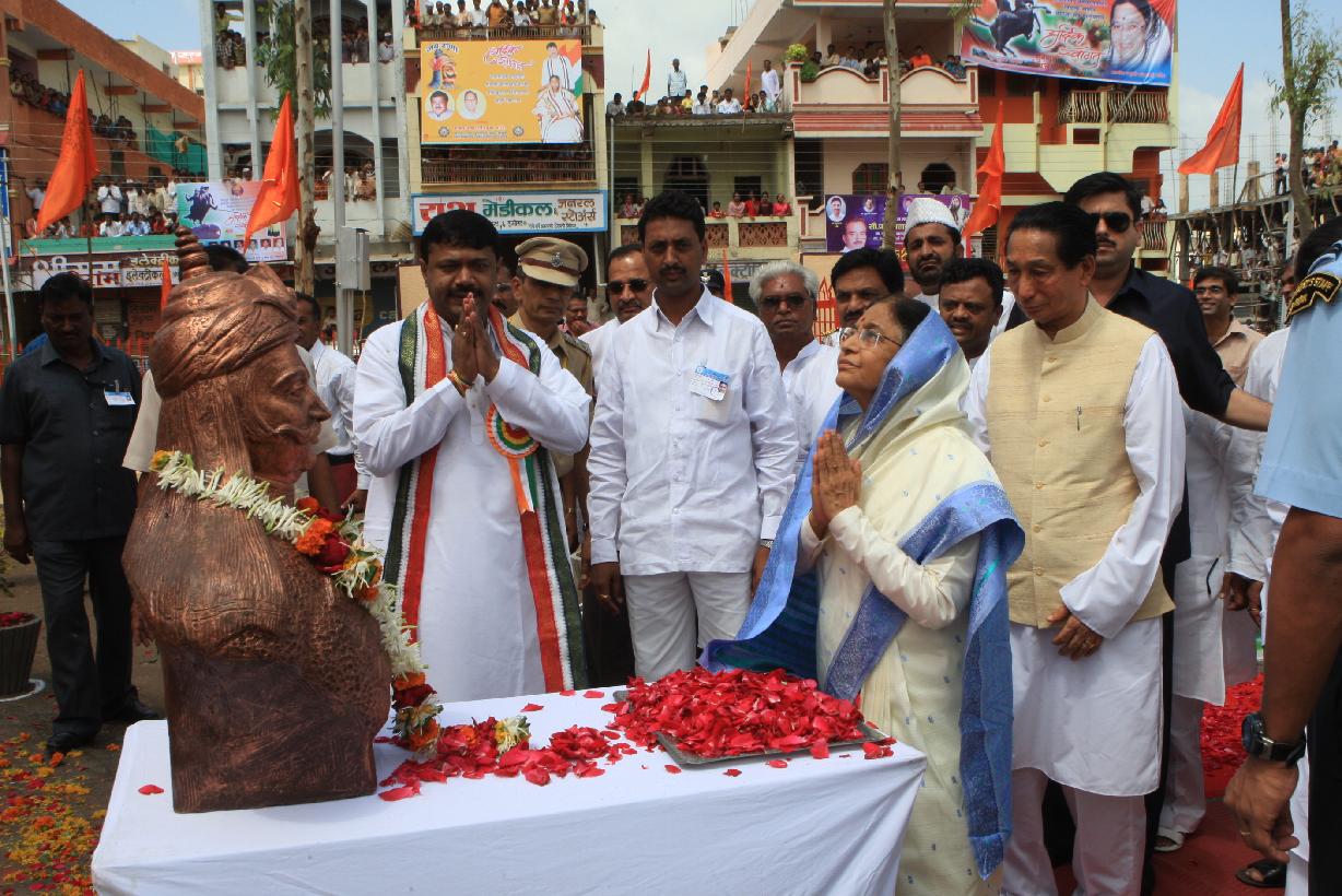 | Caption: | The President of India, Smt Pratibha Devisingh Patil during the Dedication of the Statue of Maharana Pratap to the People of Chikhli at Chikhli in Maharashtra on July 17, 2009 |