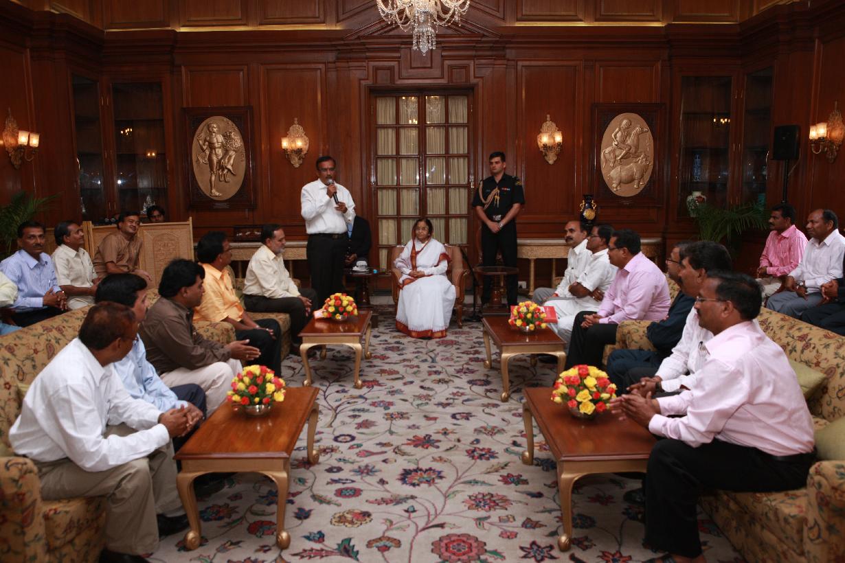 | Caption: | The President of India, Smt Pratibha Devisingh Patil interacting with Dr Gunwant Dahane and others at Rashtrapati Bhavan in New Delhi on Oct 07, 2009 |