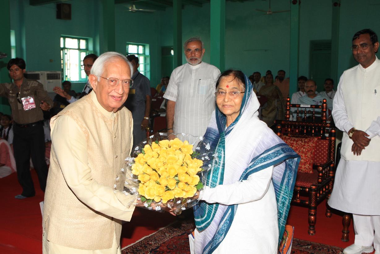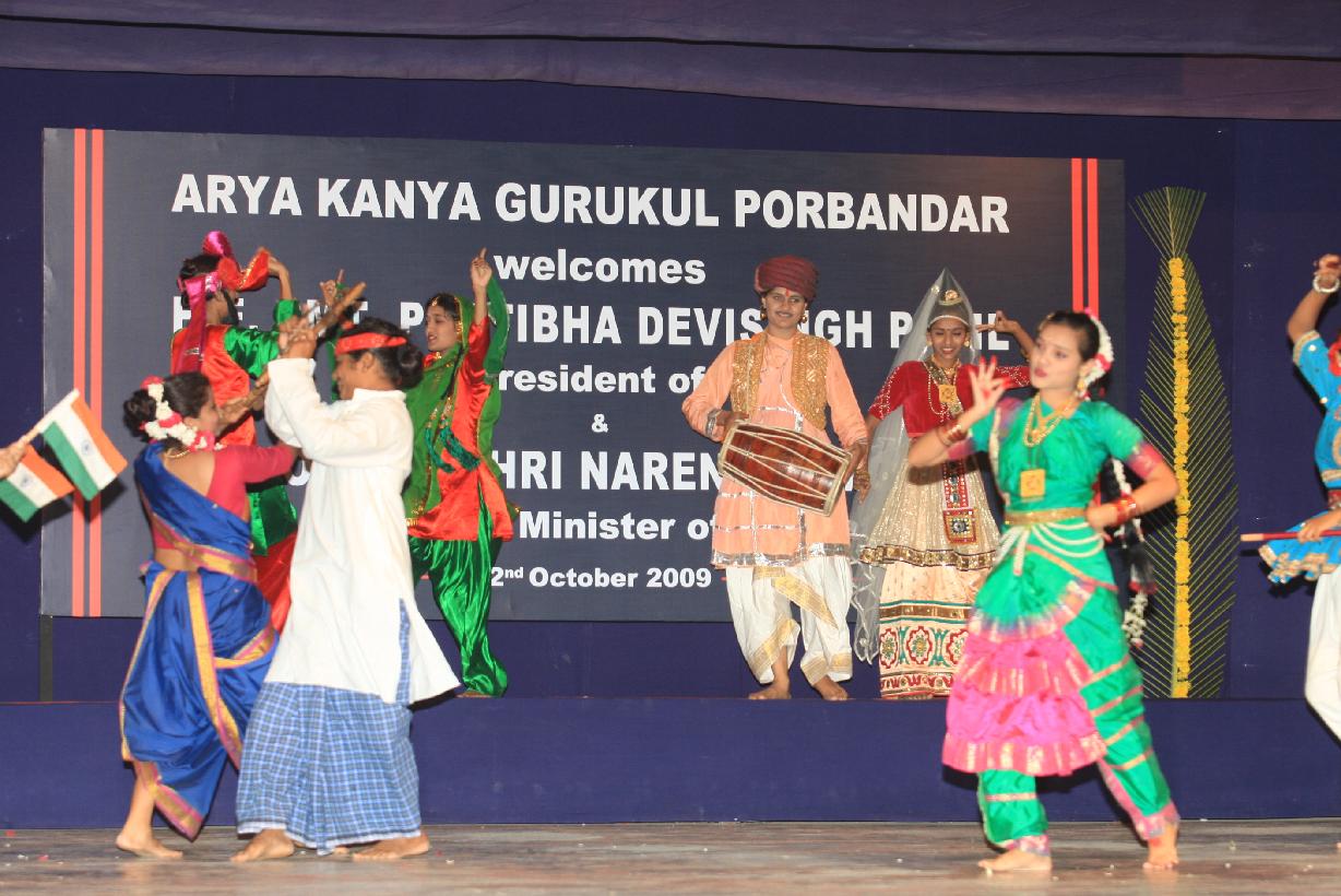 | Caption: | The President of India, Smt Pratibha Devisingh Patil during visit to Arya Kanya Gurukul at Porbandar in Gujarat on Oct 02, 2009 |