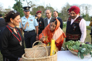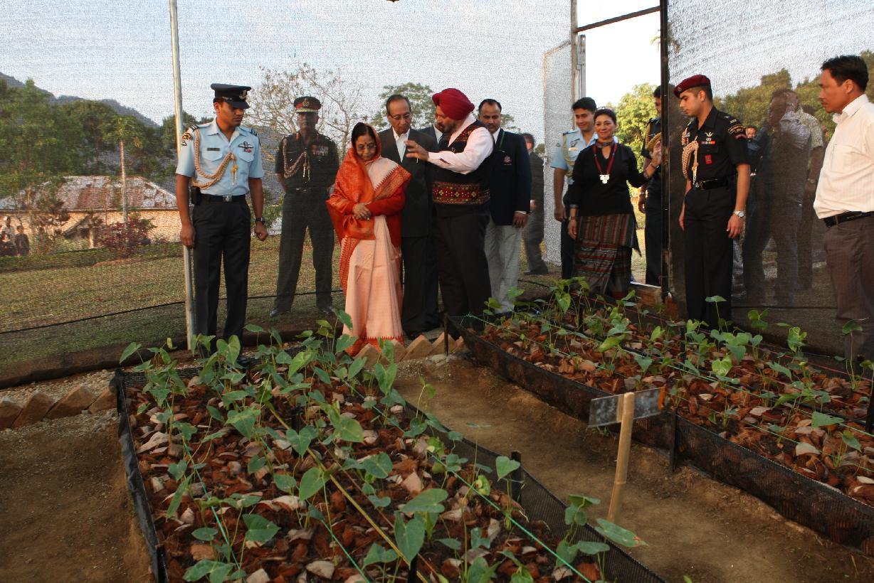 | Caption: | The President of India, Smt Pratibha Devisingh Patil planting of sapling and going around the Itanagar Raj Bhavan in Arunachal Pradesh on April 02, 2009 |