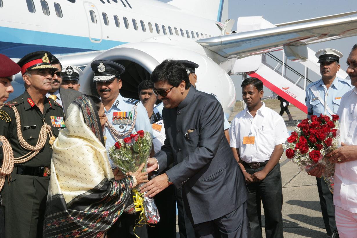 | Caption: | The President of India, Smt Pratibha Devisingh Patil being welcomed by the Chief Minister of Maharashtra, Shri Ashok Chavan at Nagpur Airport in Maharashtra on Jan 06, 2010 |