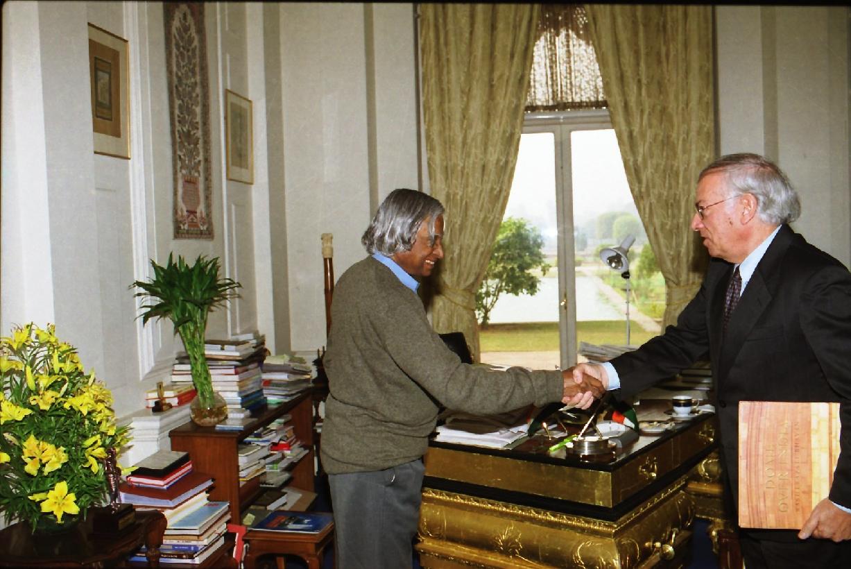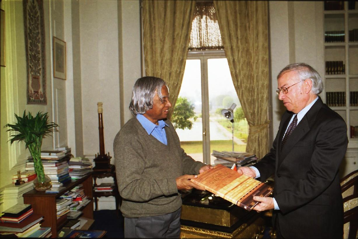 | Caption: | The President of India, Dr A P J Abdul Kalam at the Farewell Call by the Ambassador of Israel, HE Mr David Aphek at Rashtrapati Bhavan in New Delhi on Dec 12, 2002 |
