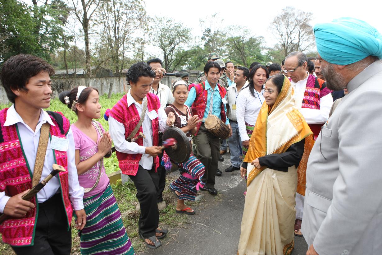 | Caption: | The President of India, Smt Pratibha Devisingh Patil at the Reception during her arriving at Tezu in Arunachal Pradesh on April 03, 2009 |