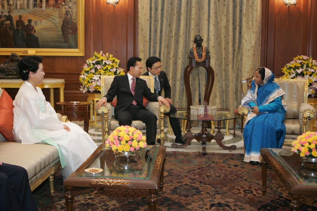 | Caption: | The President of the Republic of Korea, HE Mr Lee Myung-bak calling on the President of India, Smt Pratibha Devisingh Patil at Rashtrapati Bhavan in New Delhi on Jan 25, 2010 |