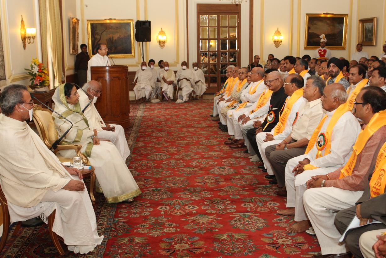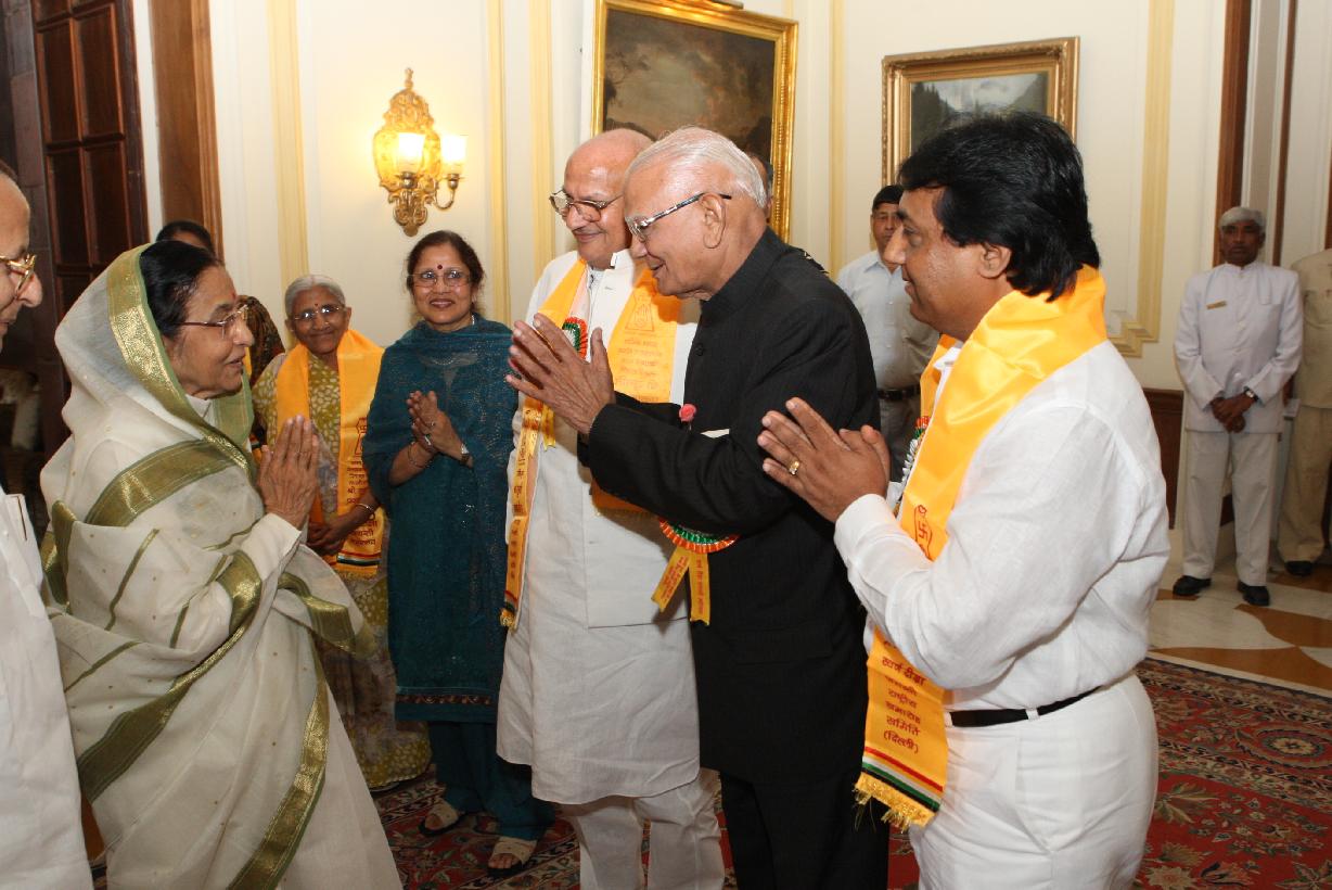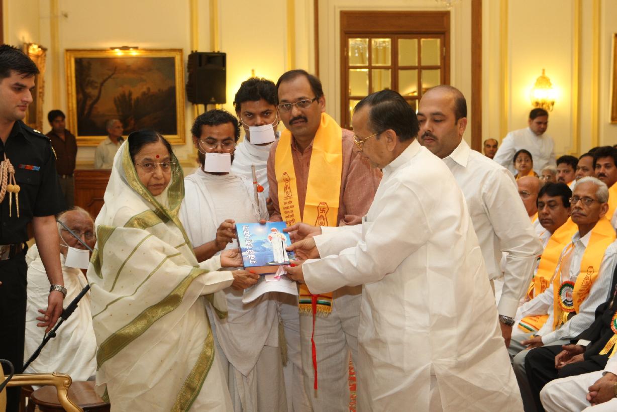 | Caption: | The President of India, Smt Pratibha Devisingh Patil interacting with Delegates from Rajrishi Pujyashri Prakashji Swaran at Rashtrapati Bhavan in New Delhi on April 06, 2009 |