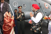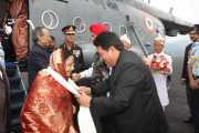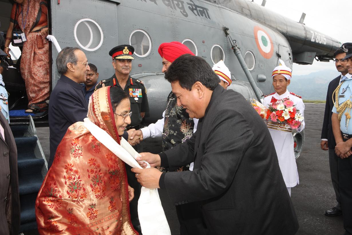 | Caption: | The President of India, Smt Pratibha Devisingh Patil inspecting Guard of Honour during her arrival at Itanagar Helipad in Arunachal Pradesh on April 01, 2009 |
