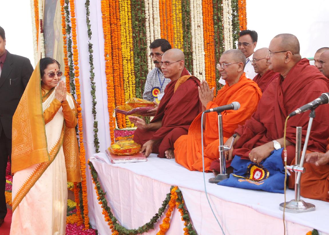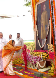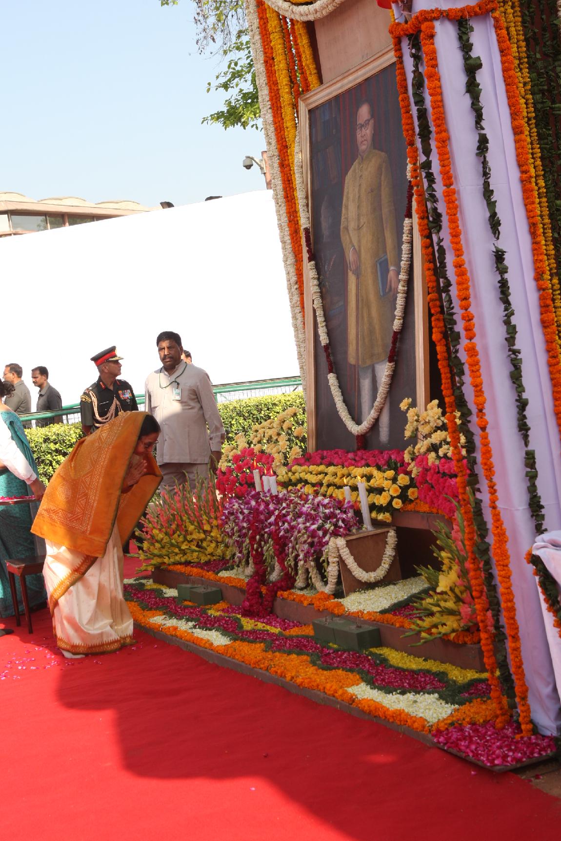 | Caption: | The President of India, Smt Pratibha Devisingh Patil paying Floral tributes to Baba Saheb Dr B R Ambedkar on the Occasion of his 118th Birth Anniversary at Parliament House Laws in New Delhi on April 14, 2009 |