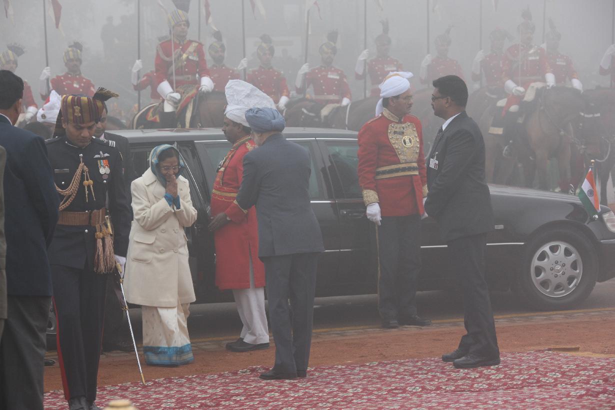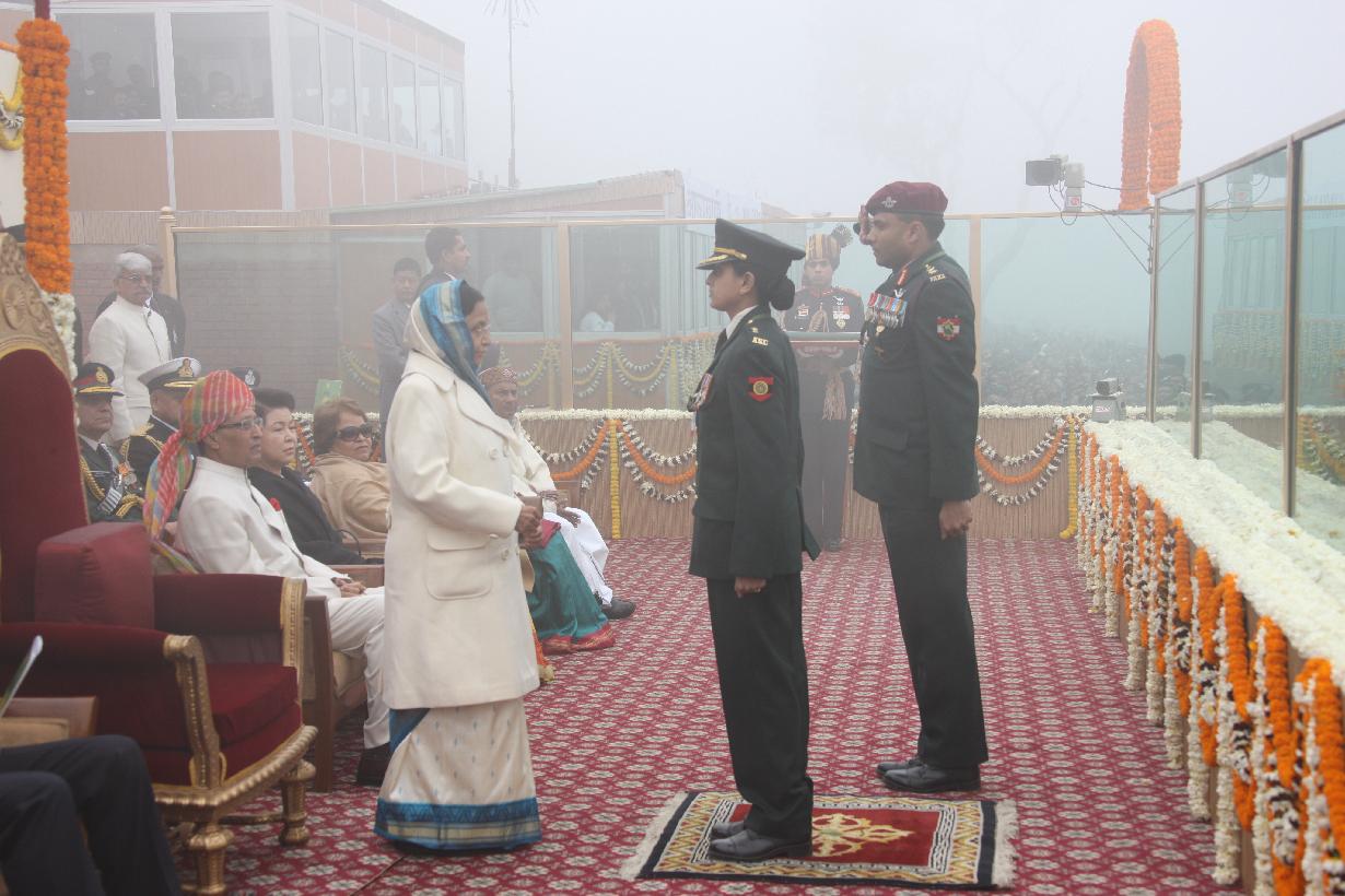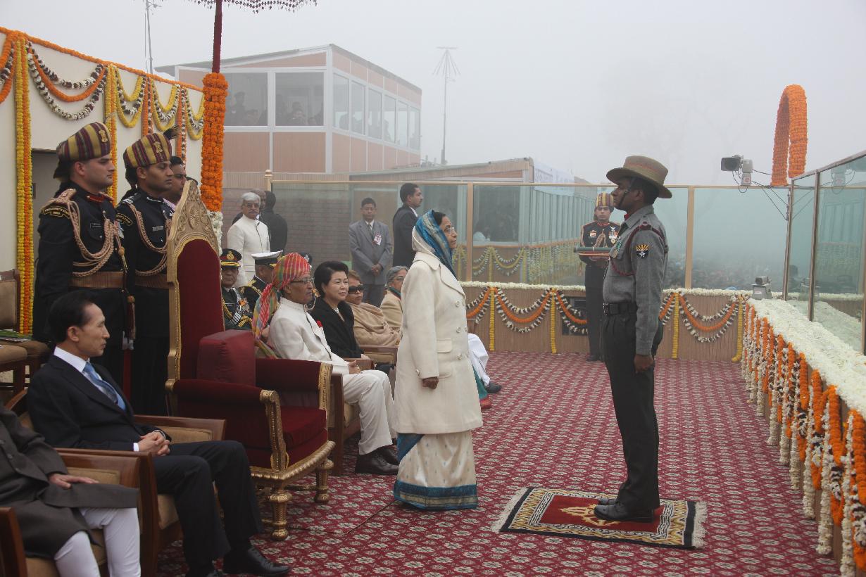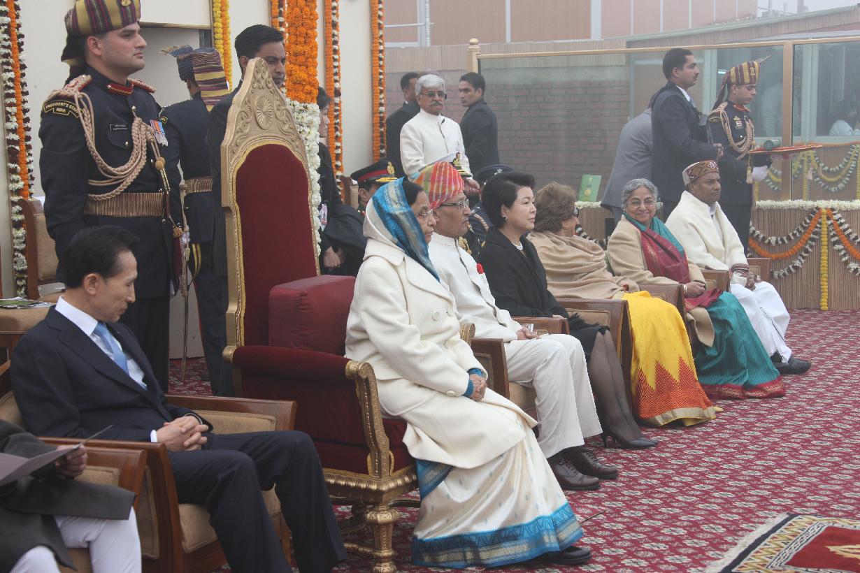 | Caption: | The President of India, Smt Pratibha Devisingh Patil with the President of Korea and Chief Guest of Republic Day, Mr Lee Myung Bak during the Celebration of the 61st Republic Day-2010 at India Gate in New Delhi on Jan 26, 2010 |