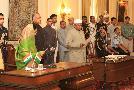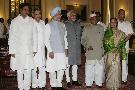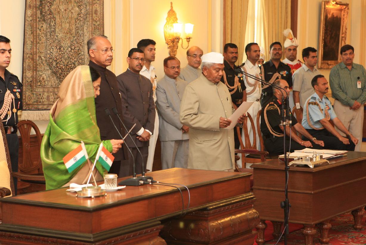 | Caption: | The President of India, Smt Pratibha Devisingh Patil administering the oath of Protem Speaker to Shri Manikrao Gavit at a Swearing-in-Ceremony at Rashtrapati Bhavan in New Delhi on June 1, 2009 |