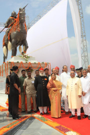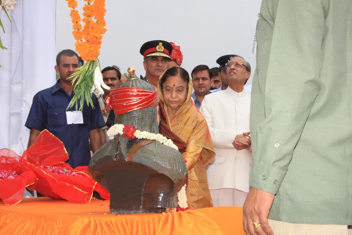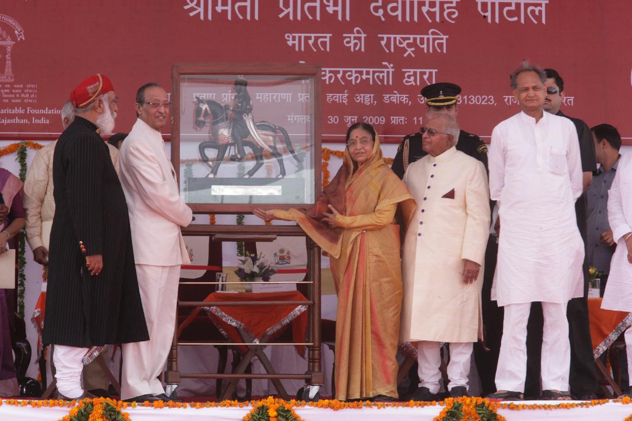 | Caption: | The President of India, Smt Pratibha Devisingh Patil unveiling the Statue of Maharana Pratap at Maharana Pratap Airport Dhabok at Udaipur in Rajasthan on June 30, 2009 |