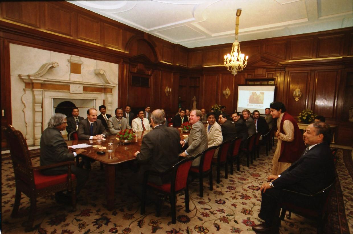 | Caption: | The Members of Technical Advisory Group (TAG) for Media Lab Asia calling on the President of India, Dr A P J Abdul Kalam at the Committee Room of Rashtrapati Bhavan in New Delhi on Dec 07, 2002 |