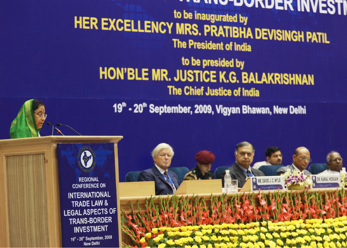 | Caption: | The President of India, Smt Pratibha Devisingh Patil inaugurating the Regional Conference on "International Trade Law and Legal Aspects of Trans-Border Investment" at Vigyan Bhavan in New Delhi on Sep 19, 2009 |