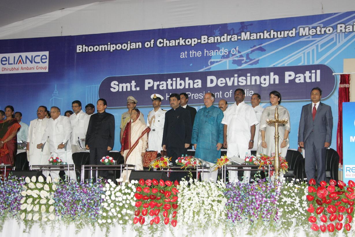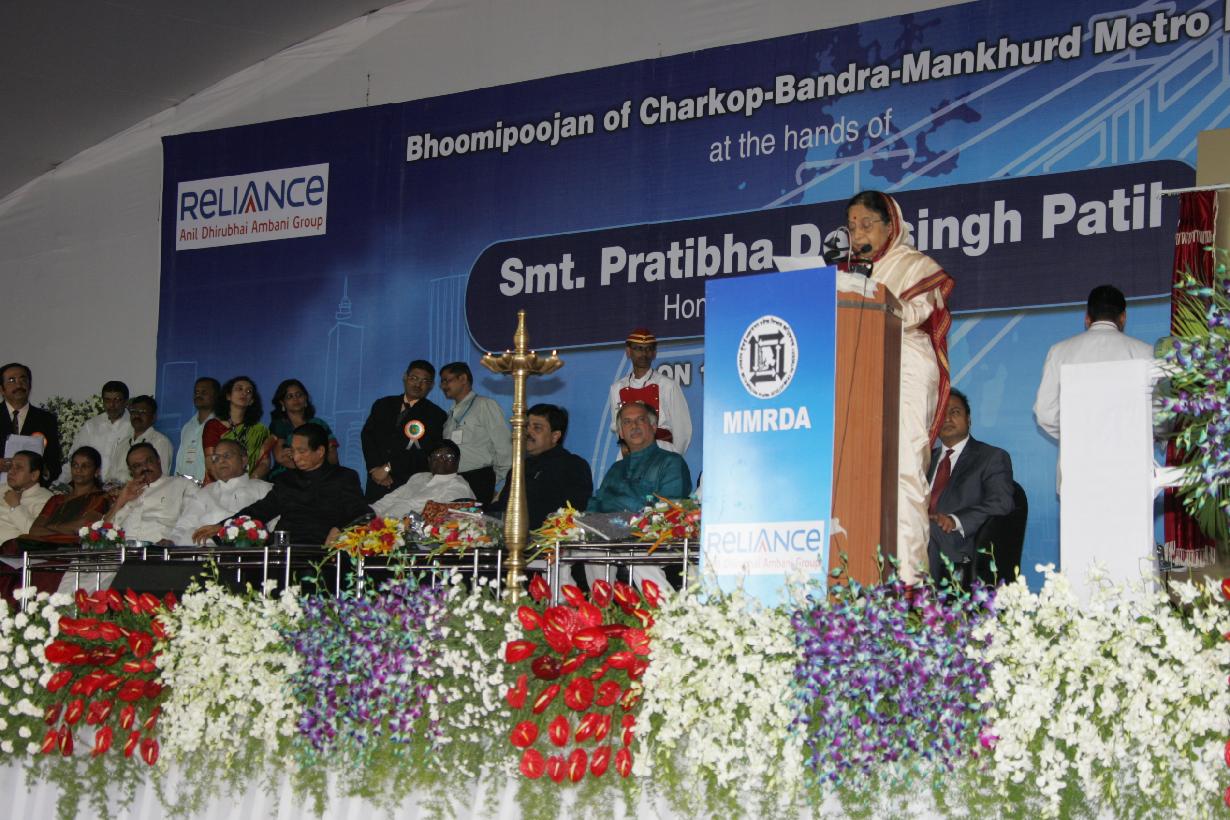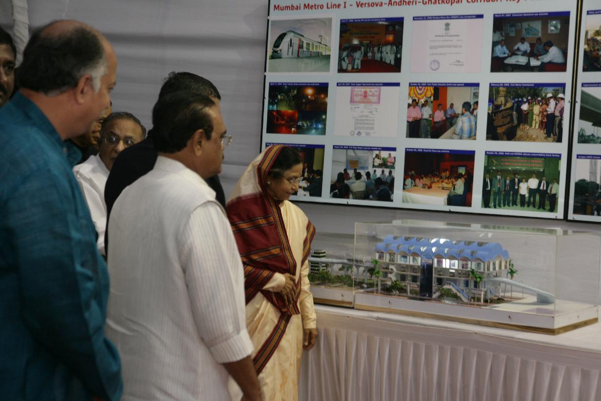 | Caption: | The President of India, Smt Pratibha Devisingh Patil looking the Model of Charkop - Bandra - Mankhurd Metro Rail Project during the Bhoomipoojan Ceremony at Mumbai in Maharashtra on Aug 18, 2009 |