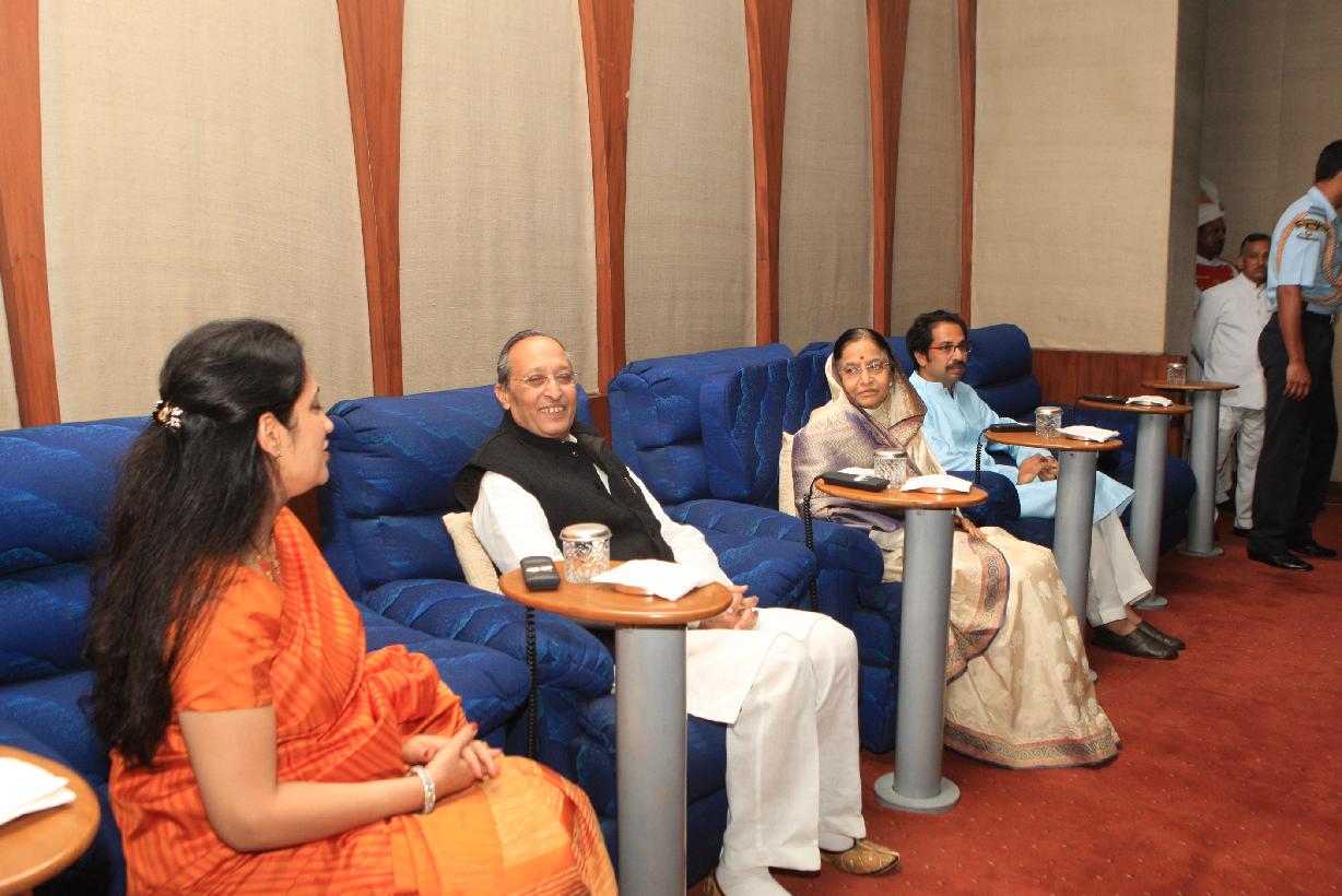 | Caption: | The President of India, Smt Pratibha Devisingh Patil witnessing the Screening of Film Goshta Chhoti Dongaraevadhi at Rashtrapati Bhavan Auditorium in New Delhi on Aug 25, 2009 |