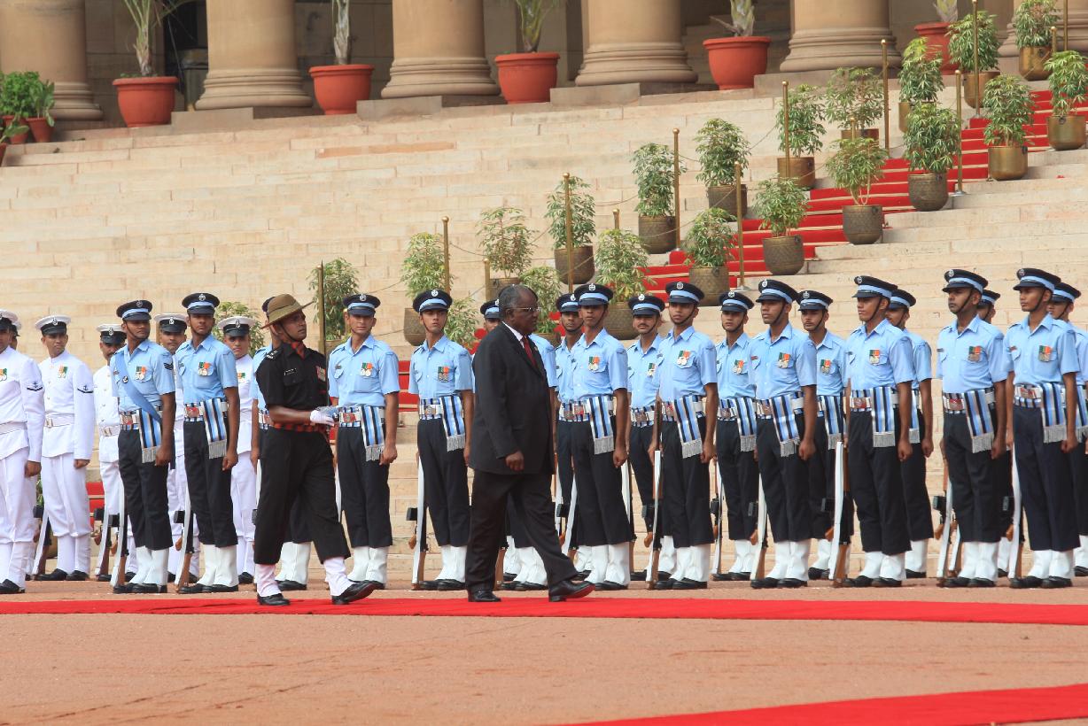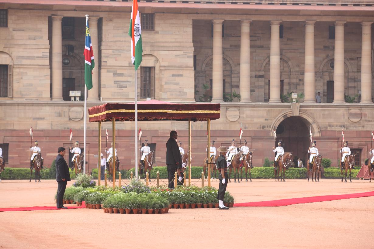 | Caption: | The President of India, Smt Pratibha Devisingh Patil at the Ceremonial Reception of the President of the Republic of Namibia, HE Mr Hifikepunye Pohamba and Mrs Penehupifo Pohamba at the Forecourt of Rashtrapati Bhavan in New Delhi on Aug 31, 2009 |