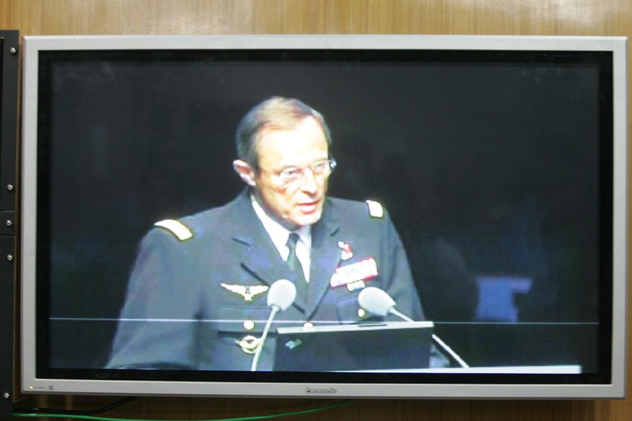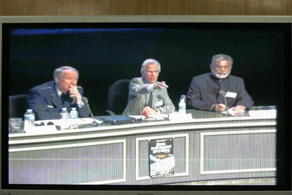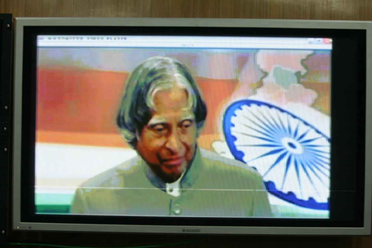 | Caption: | The President of India, Dr A P J Abdul Kalam addressing at the International Conference on 'Space - A Conceptual Challenge to the Defence' at Paris through Multi Media Tele Conferencing at Multi Media Studio of Rashtrapati Bhavan in New Delhi on June 05, 2007 |
