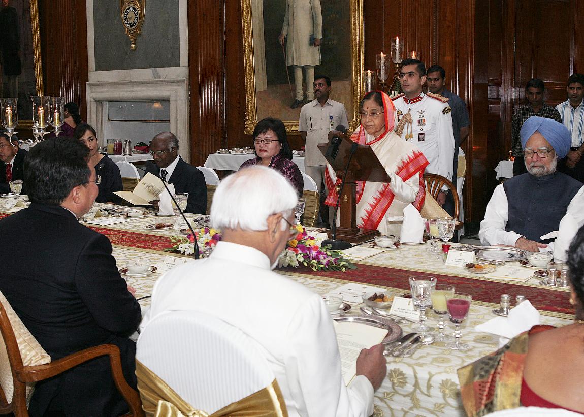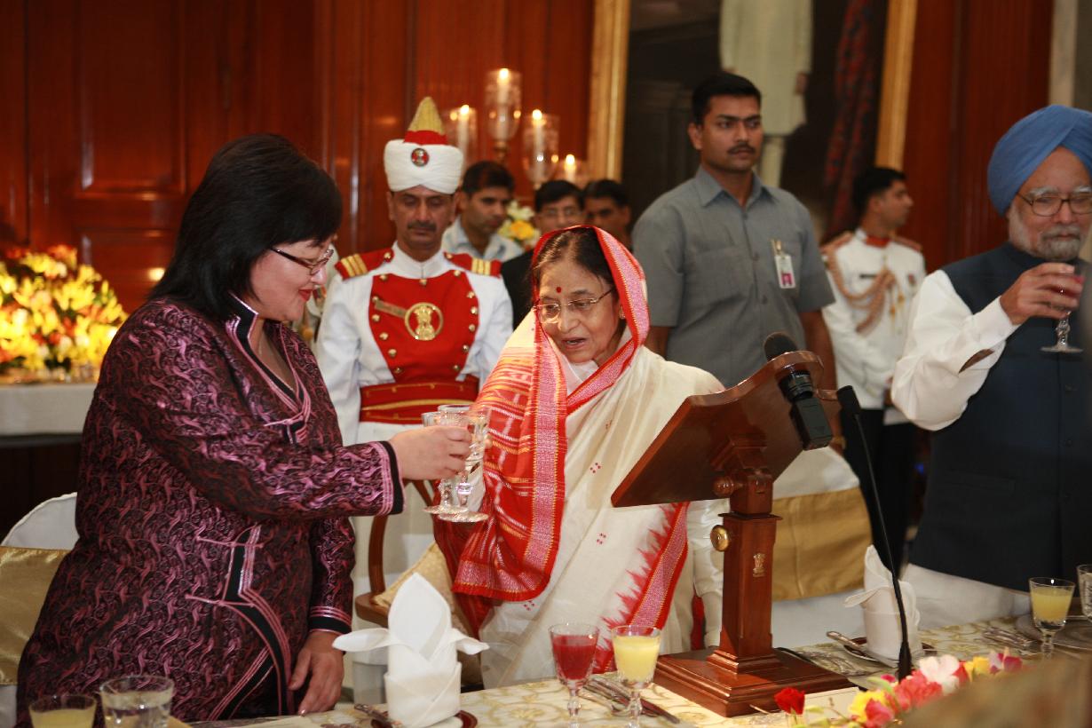 | Caption: | The President of India, Smt Pratibha Devisingh Patil at the Banquet Hosted in Honour of the President of Mongolia, HE Mr Tsakhiagiin Elbegdorj at Rashtrapati Bhavan in New Delhi on Sep 14, 2009 |