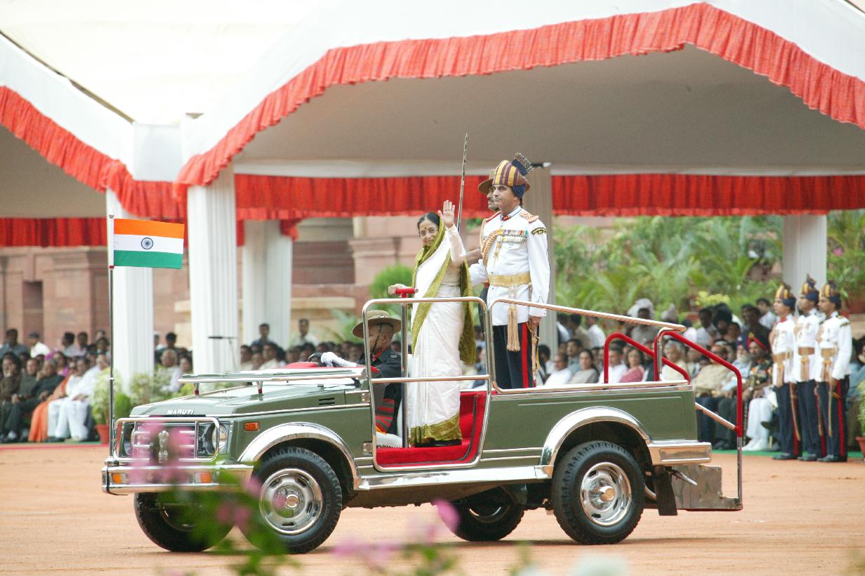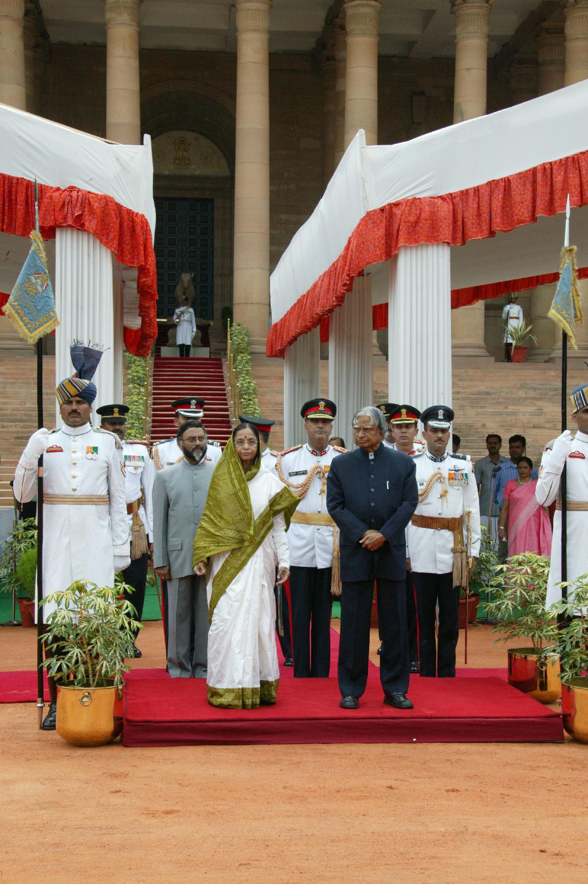 | Caption: | The President of India, Smt Pratibha Devisingh Patil inspecting Guard of Honour at Rashtrapati Bhavan in New Delhi on July 25, 2007 |