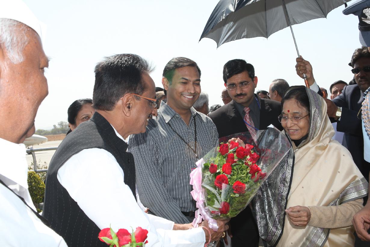 | Caption: | The President of India, Smt Pratibha Devisingh Patil during her arrival at Aurangabad Airport in Maharashtra on Feb 08, 2008 |