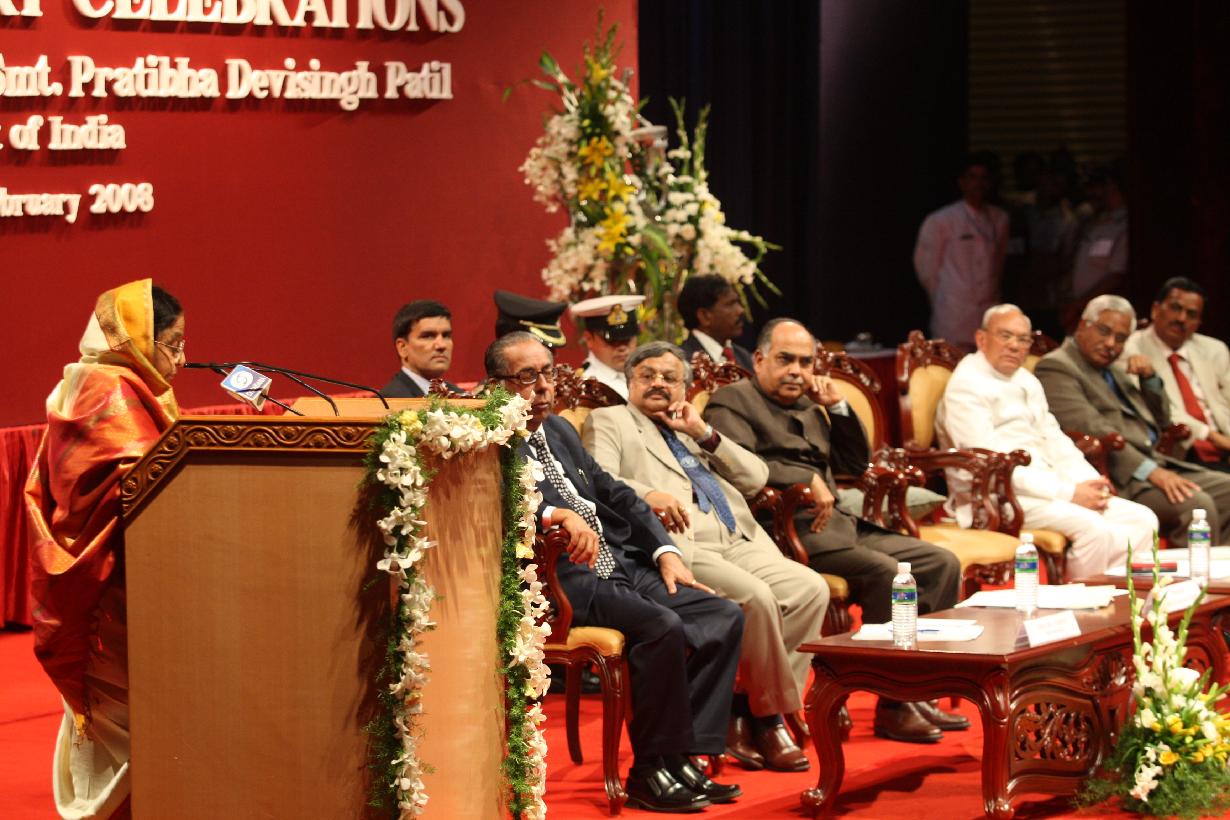 | Caption: | The President of India, Smt Pratibha Devisingh Patil during the First Anniversary Celebration of Bangalore Mediation Centre at Bangalore in Karnataka on Feb 01, 2008 |