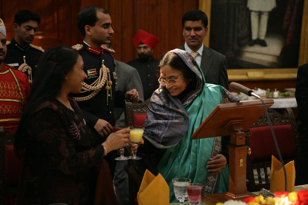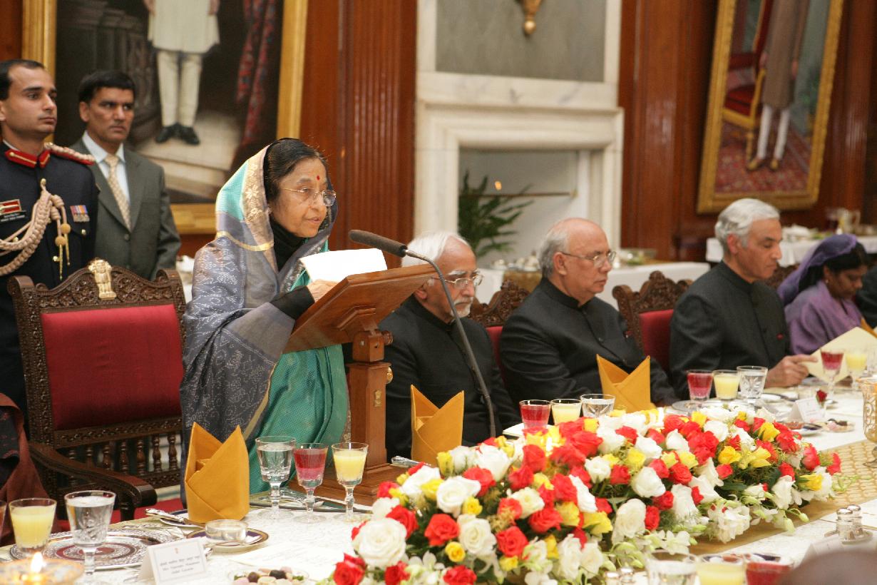 | Caption: | The President of India, Smt Pratibha Devisingh Patil at the Banquet Hosted in Honour of the President of the Maldives, HE Mr Maumoon Abdul Gayoom at Rashtrapati Bhavan in New Delhi on Feb 11, 2008 |