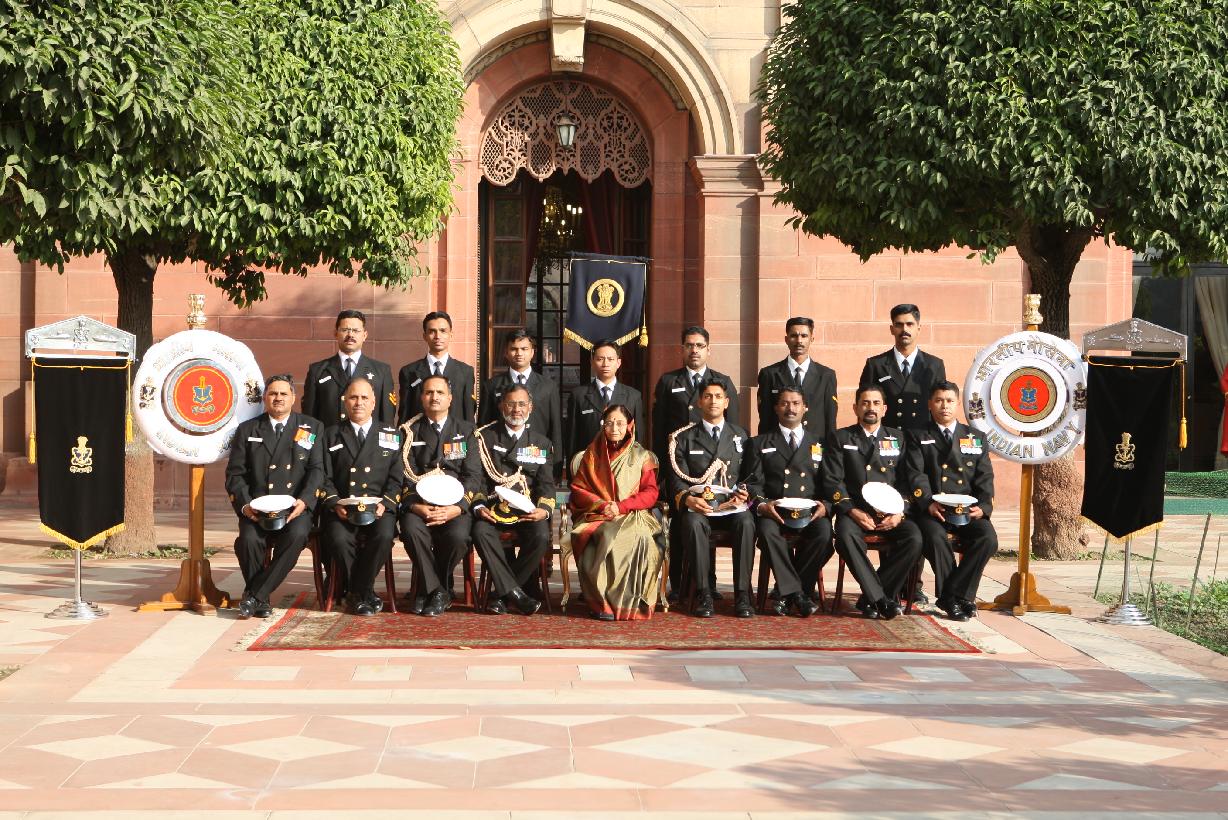 | Caption: | The President of India, Smt Pratibha Devisingh Patil posing for a Group Photograph with Navy Staff at Rashtrapati Bhavan in New Delhi on Dec 04, 2008 |