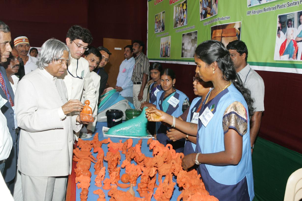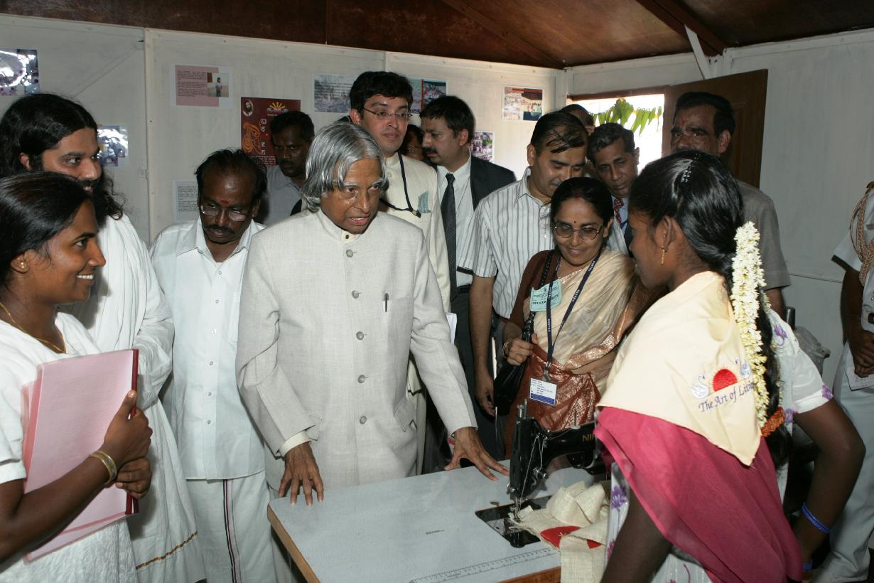 | Caption: | The President of India, Dr A P J Abdul Kalam visiting the Community Centres set up by TIFAC and interacting with the Self Help Groups at Akkaraipettai District of Nagapattinam in Tamil Nadu on June 30, 2005 |