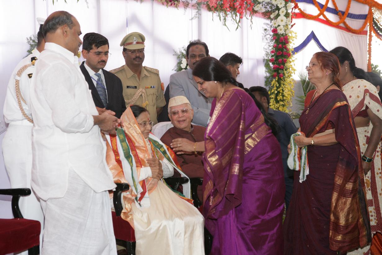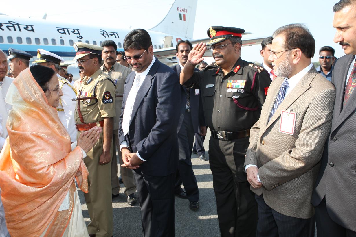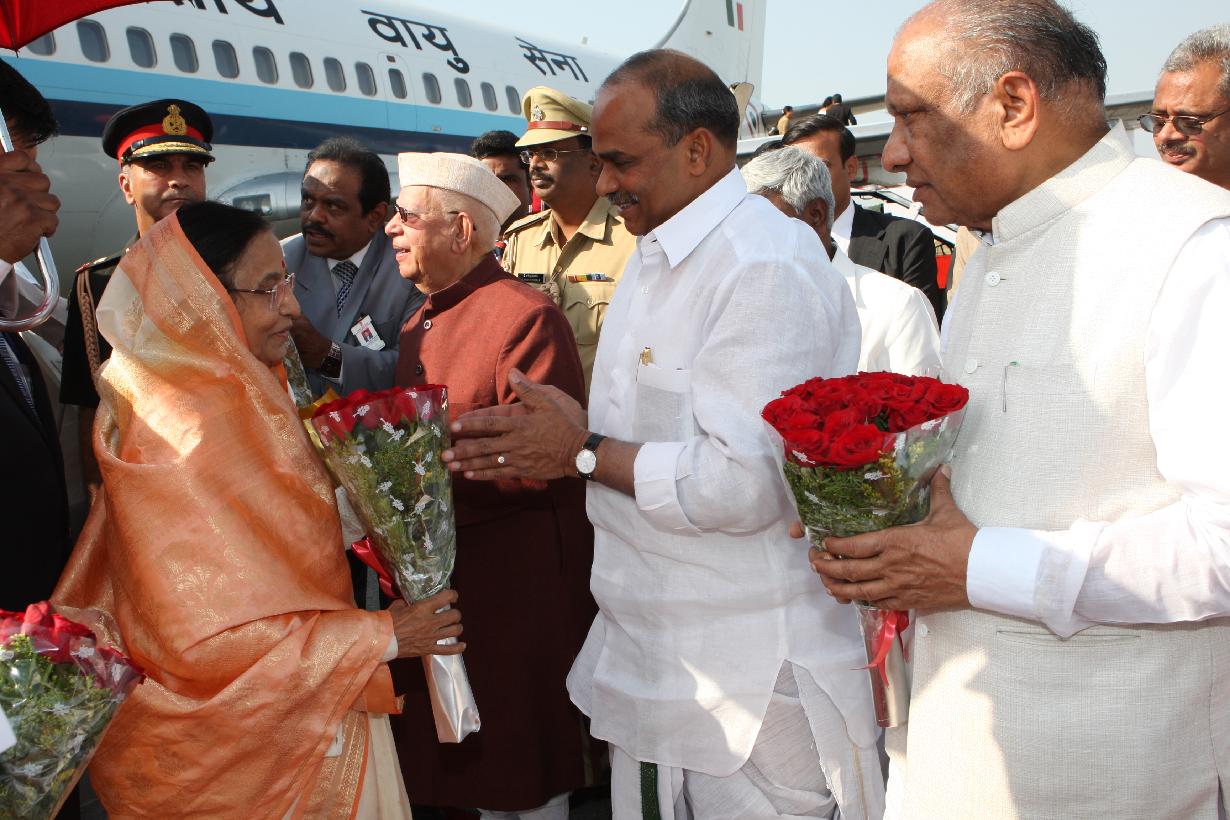 | Caption: | The President of India, Smt Pratibha Devisingh Patil being welcomed by the Governor of Andhra Pradesh, Shri Narayan Dutt Tiwari at Hyderabad Airport in Andhra Pradesh on Dec 27, 2008 |