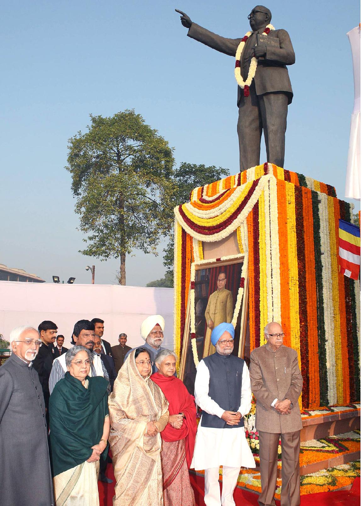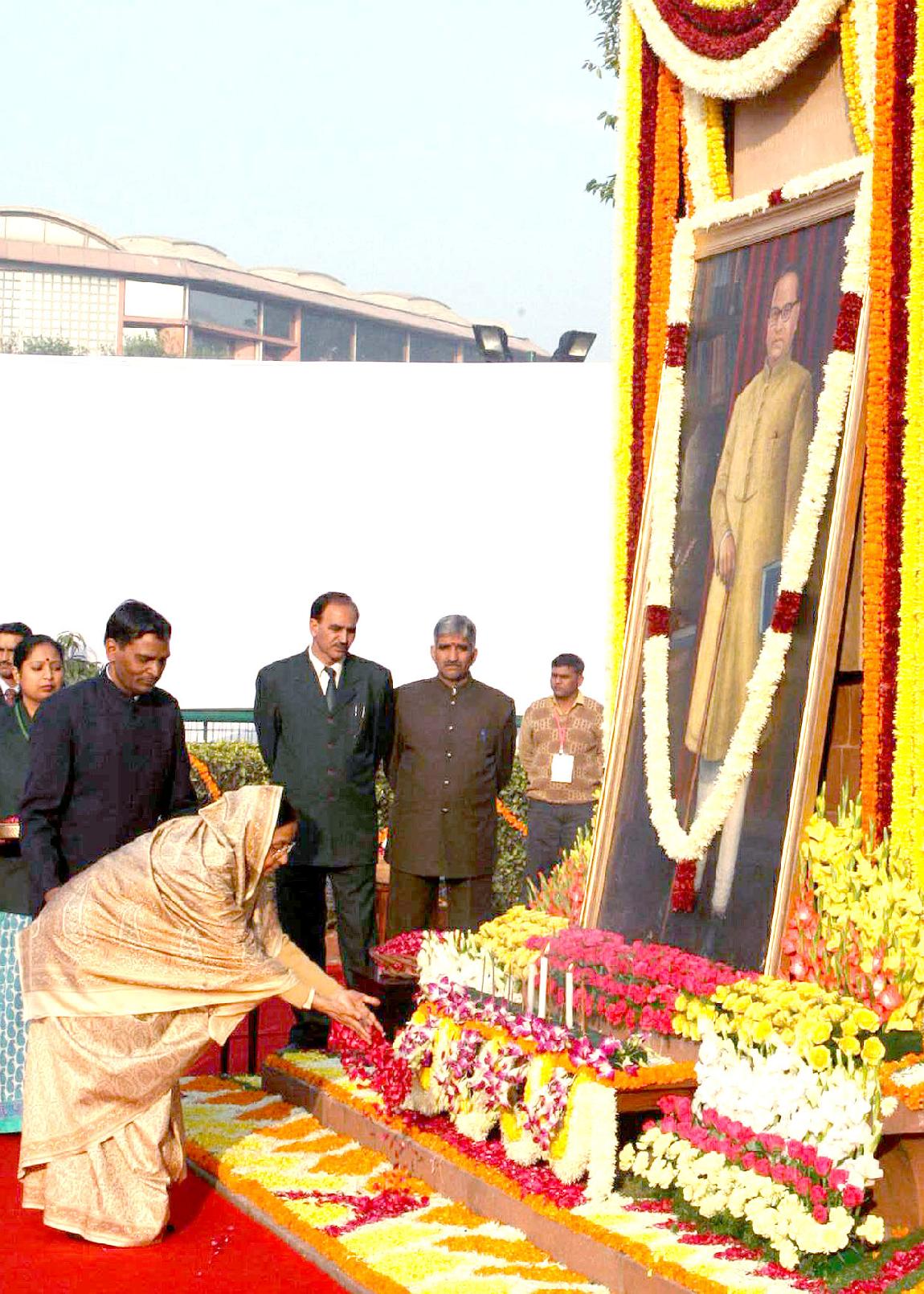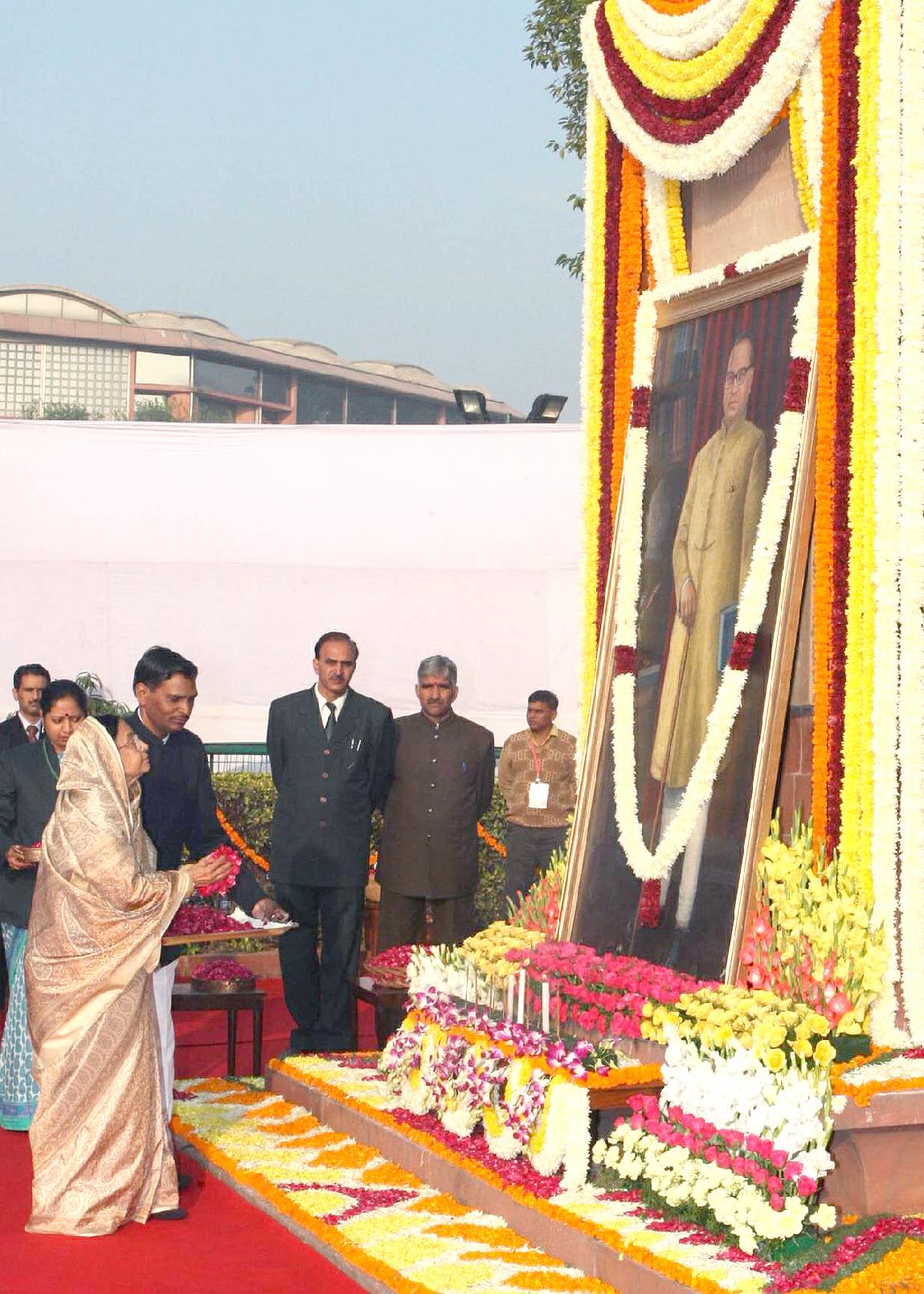 | Caption: | The President of India, Smt Pratibha Devisingh Patil offering floral tributes at the Statue of Baba Saheb Dr B R Ambedkar on his 53rd Death Anniversary at Sansad Bhavan Lawns in the Parliament House complex on Dec 06, 2008 |