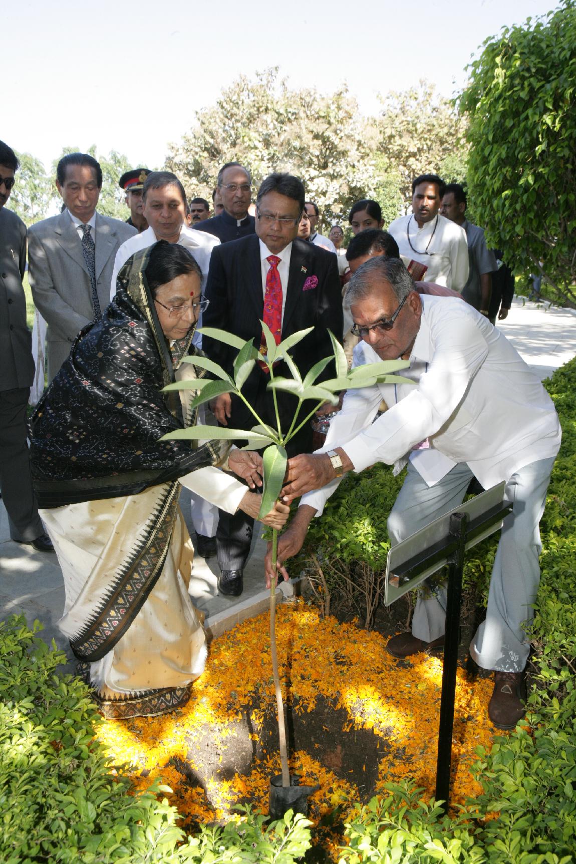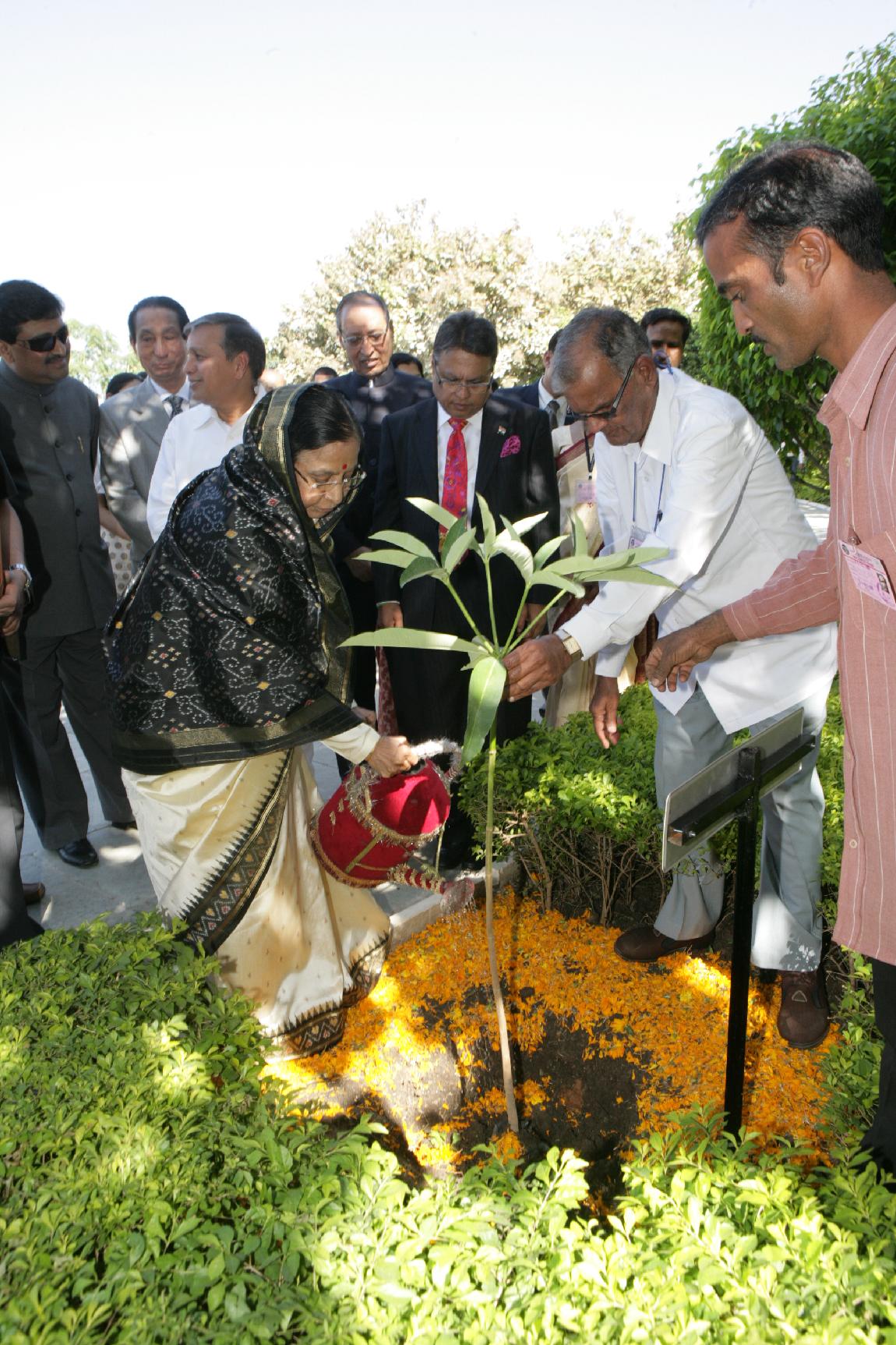 | Caption: | The President of India, Smt Pratibha Devisingh Patil paying floral tributes planting of Saplings at Darda Udyan in Maharashtra on Dec 26, 2008 |