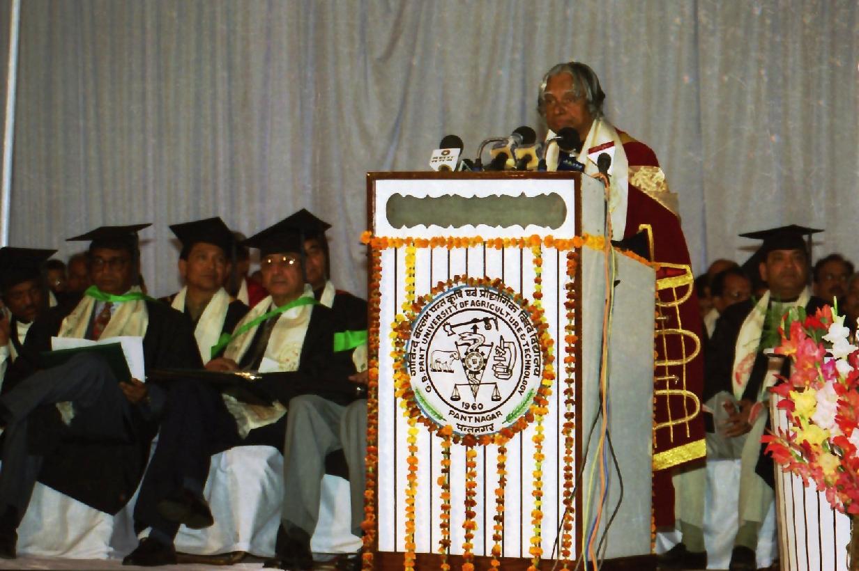 | Caption: | The President of India, Dr A P J Abdul Kalam addressing at the 21st Convocation of Govind Ballab Pant Agriculture University at Bareily in Uttar Pradesh on Nov 17, 2003 |
