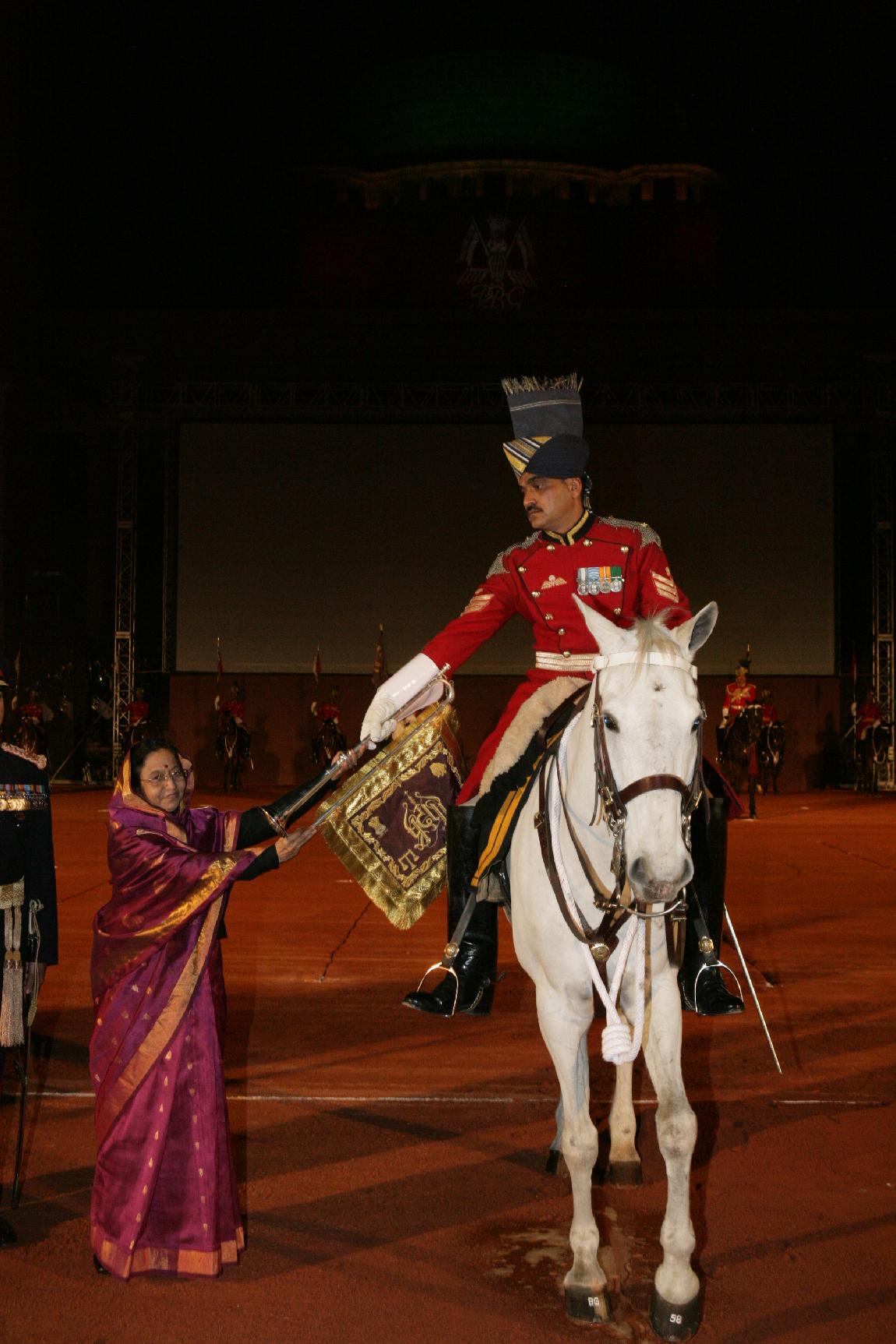 | Caption: | The President of India, Smt Pratibha Devisingh Patil presenting the Silver Trumpet and Trumpet Banner to the President's Bodyguard at a Ceremony at Rashtrapati Bhavan in New Delhi on March 01, 2008 |