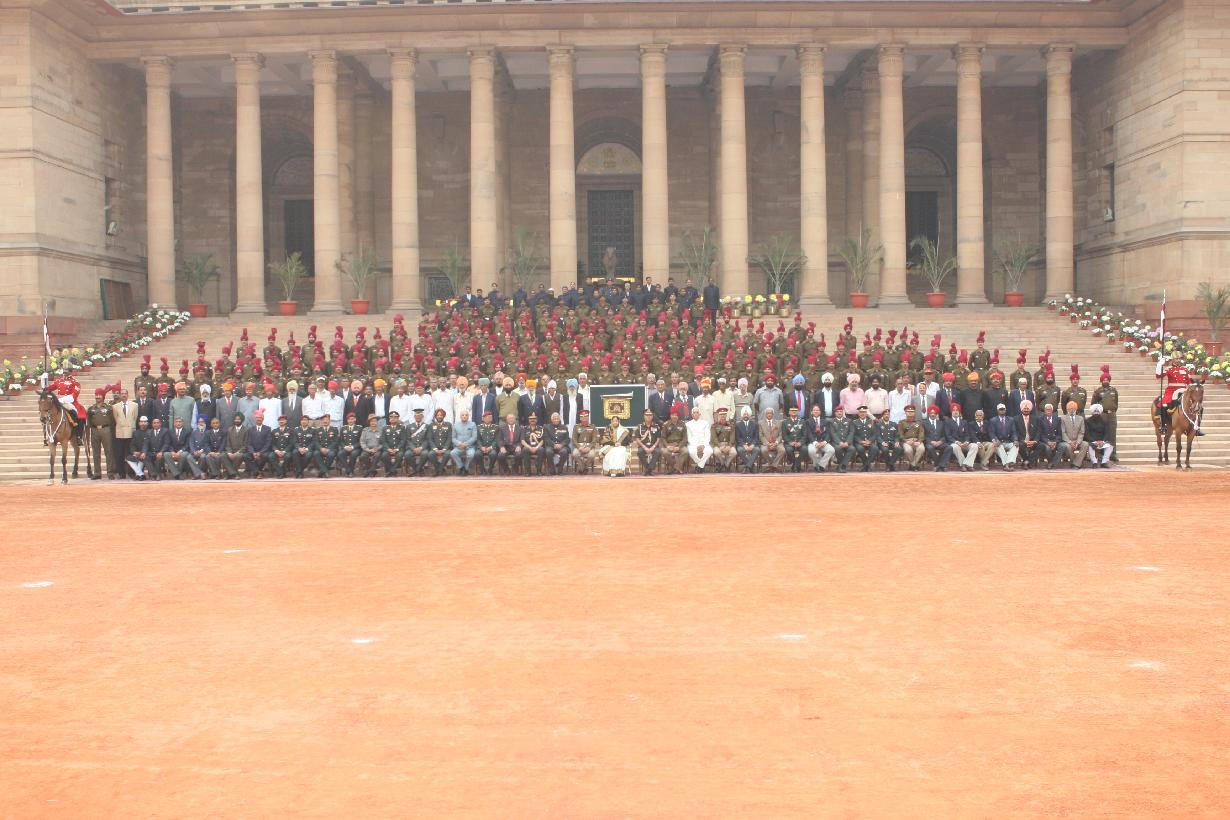 | Caption: | The President of India, Smt Pratibha Devisingh Patil posing for a Group Photograph with Junior Commissioner Officer of President Body guard at Rashtrapati Bhavan in New Delhi on March 03, 2008 |