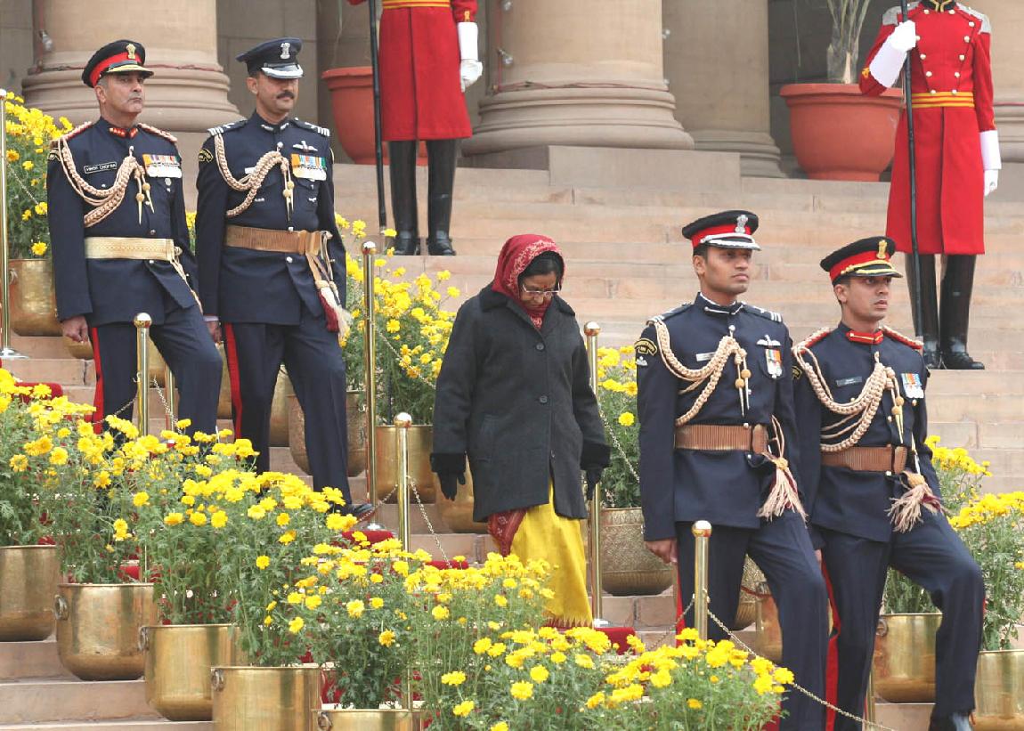 | Caption: | The President of India, Smt Pratibha Devisingh Patil before departure for Beating Retreat Ceremony at Forecourt of Rashtrapati Bhavan in New Delhi on Jan 29, 2008 |