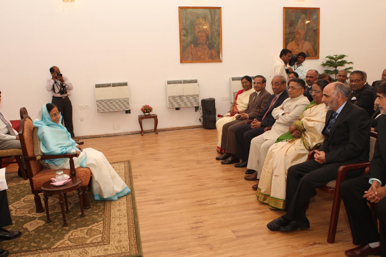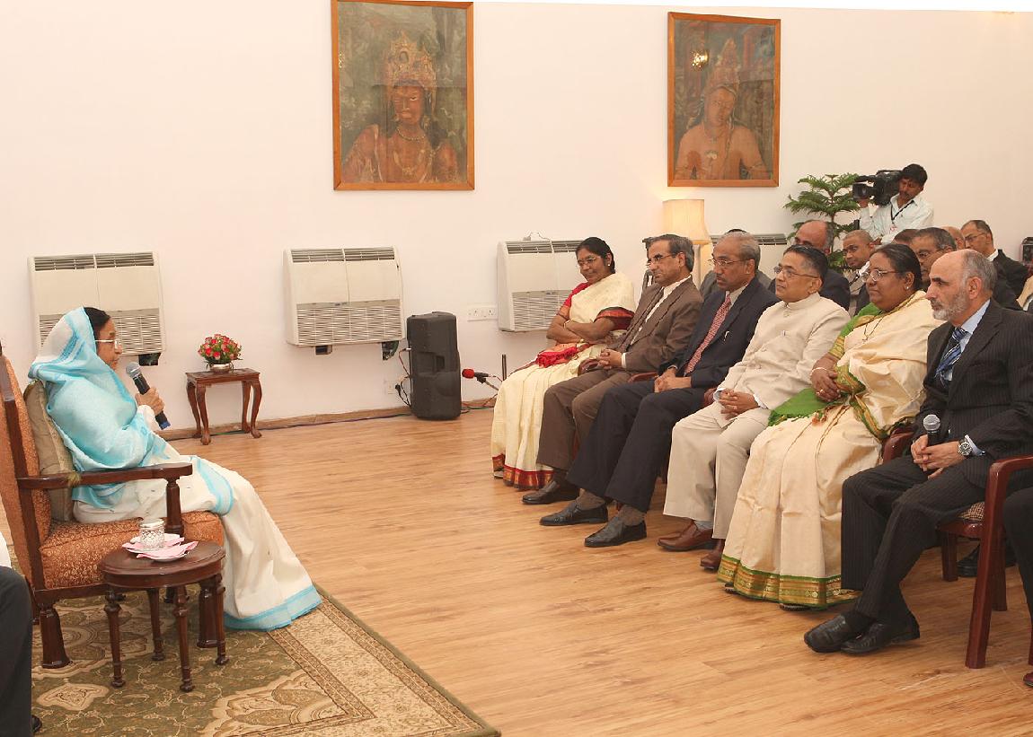 | Caption: | The President of India Smt Pratibha Devisingh Patil interacting with Chief Justice and Judges at Hyderabad in Andhra Pradesh on Dec 31, 2007 |