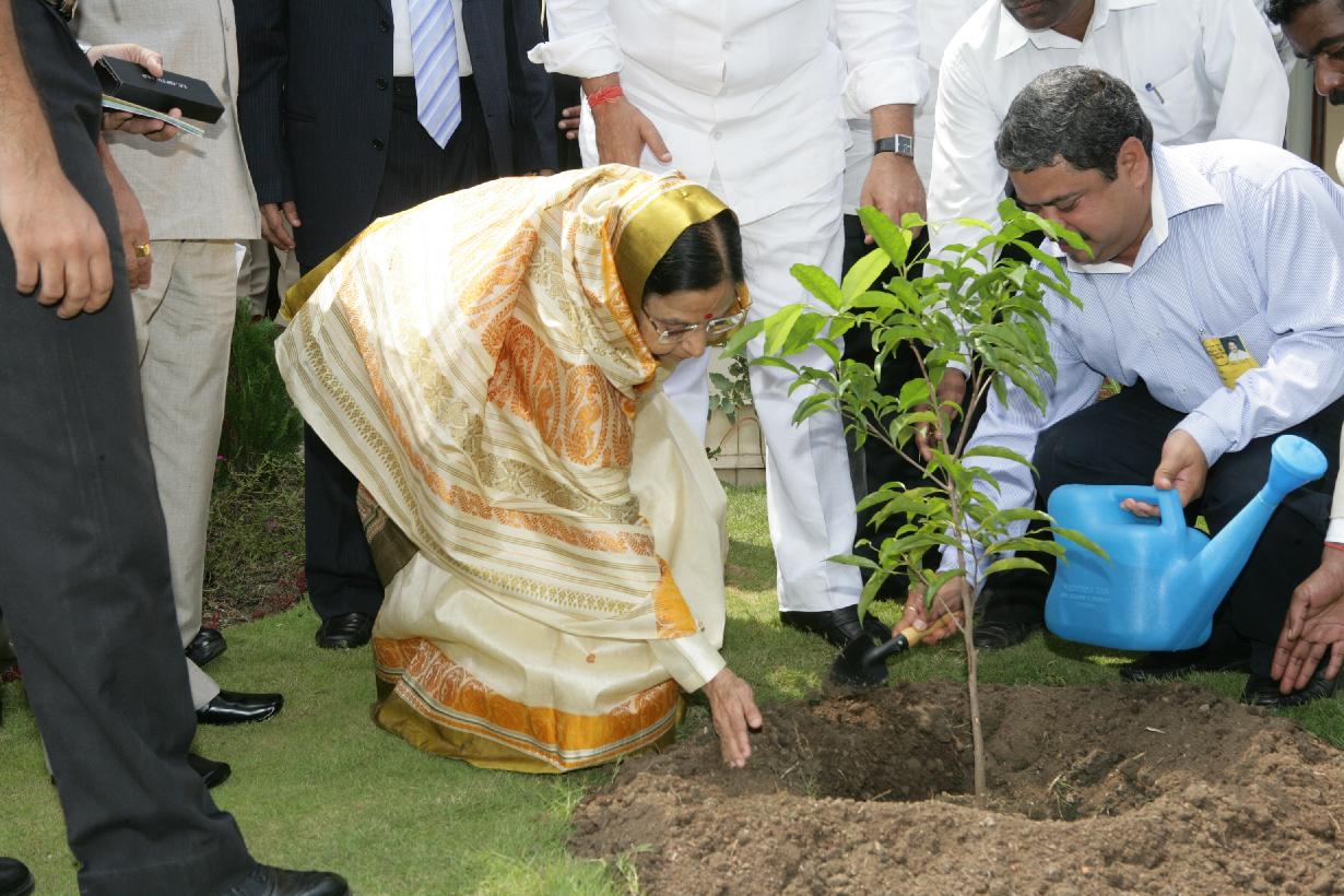 | Caption: | The President of India, Smt Pratibha Devisingh Patil planting a Tree at Circuit House of Chitrakoot in Madhya Pradesh on Sep 29, 2008 |