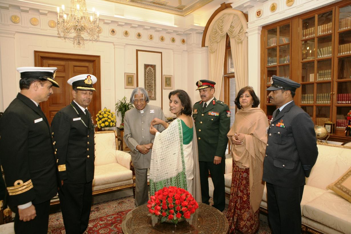 | Caption: | The President of India, Dr A P J Abdul Kalam interacting with the Service Officers and Ladies from Directorate General of Resettlement to Pinning a Flag on the occasion of Armed Forces Flag Day at Rashtrapati Bhavan in New Delhi on Dec 08, 2006 |