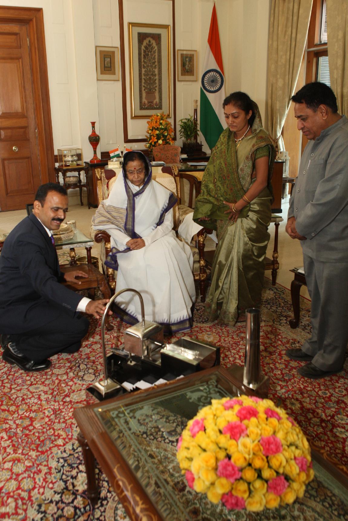 | Caption: | The President of India, Smt Pratibha Devisingh Patil interacting with Shri Shinde Ajit Balakrishna at Rashtrapati Bhavan in New Delhi on April 08, 2011 |