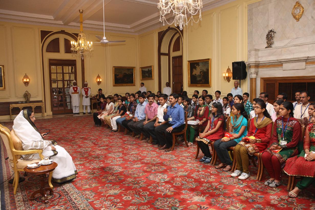 | Caption: | The President of India, Smt Pratibha Devisingh Patil interacting with the Members of Atmavishwas & Prerana Abhiyan from Jalgaon at Rashtrapati Bhavan in New Delhi on April 14, 2011 |