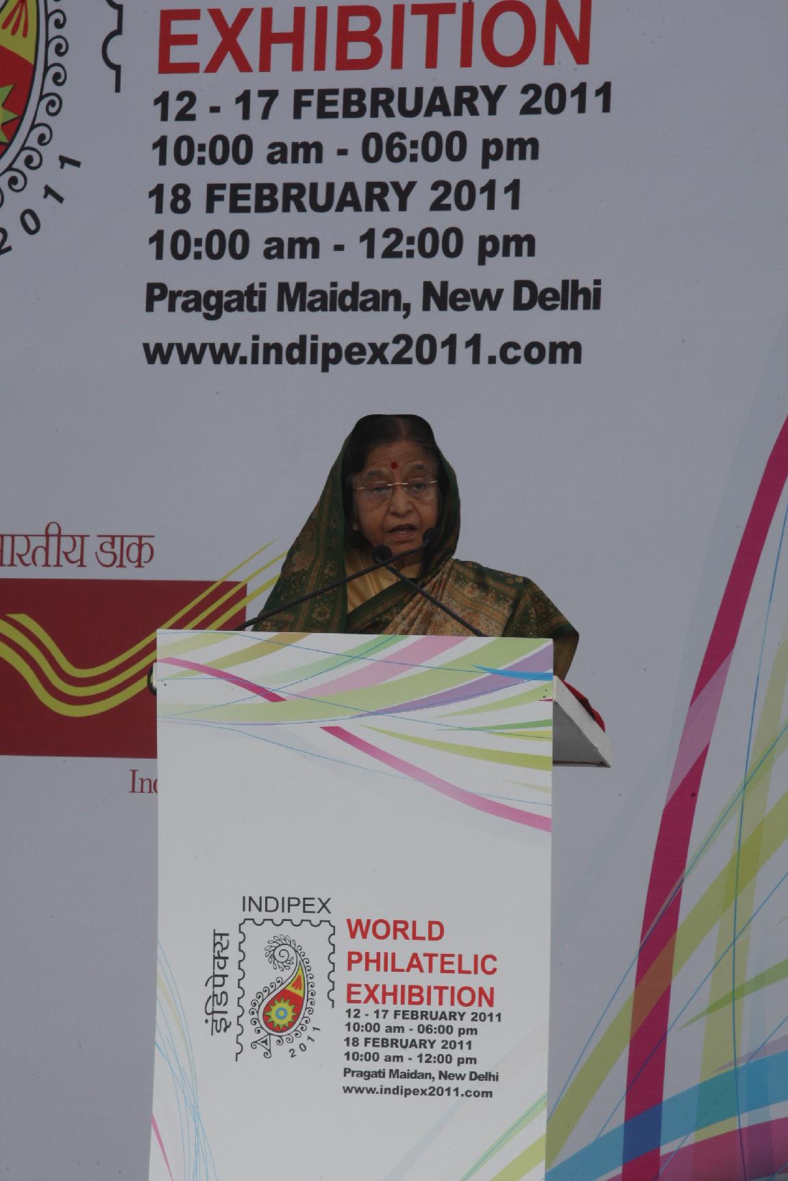 | Caption: | The President of India, Smt Pratibha Devisingh Patil during the inauguration of the INDIPEX-2011, World Philatelic Exhibition at Pragati Maidan in New Delhi on Feb 12, 2011 |