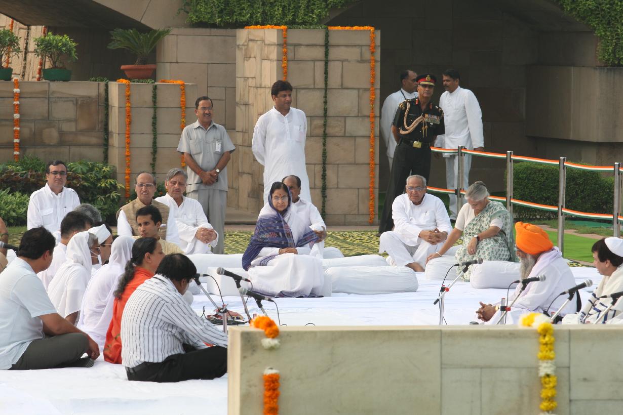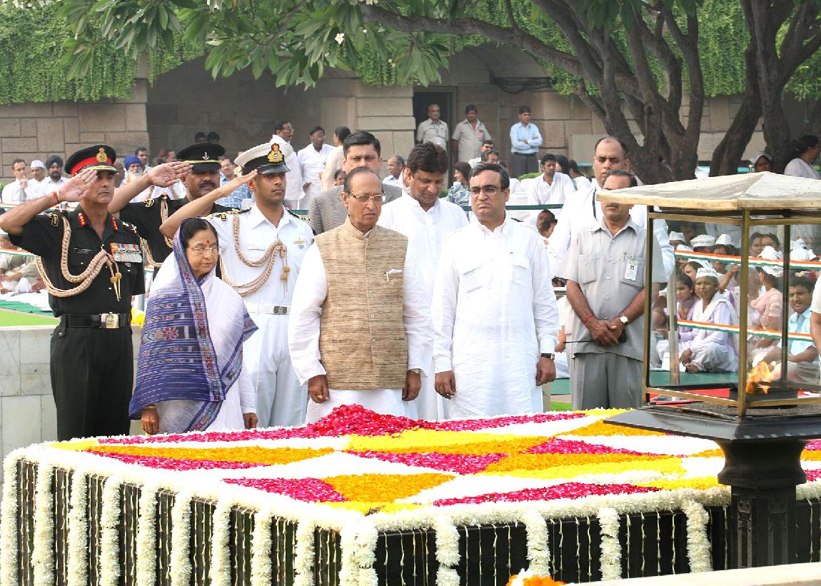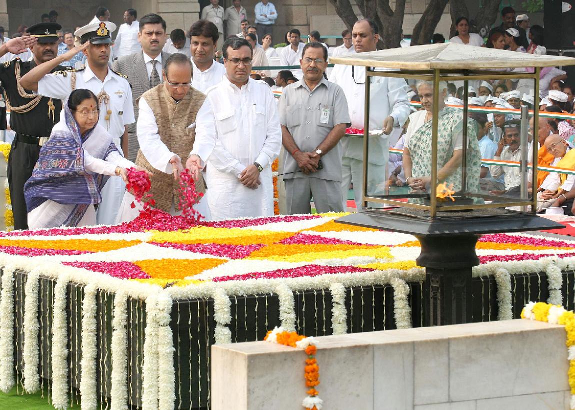 | Caption: | The President of India, Smt Pratibha Devisingh Patil paying homage at the Samadhi of the Father of the Nation, Mahatma Gandhi on his 139th Birth Anniversary at Rajghat in New Delhi on Oct 02, 2008 |