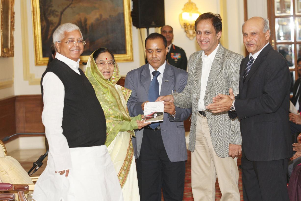 | Caption: | The President of India, Smt Pratibha Devisingh Patil receiving a copy of Book Entitled Bankruptcy to Billions: How the Indian Railways Transformed In Four Years by Shri Sudhir Kumar and Shri Shagun Mehrotra in the Presence of the Union Minister for Railways, Shri Lalu Prasad Yadav at Rashtrapati Bhavan in New Delhi on Feb 21, 2009 |