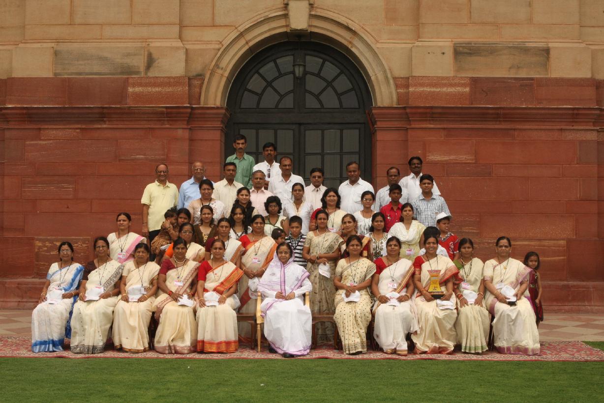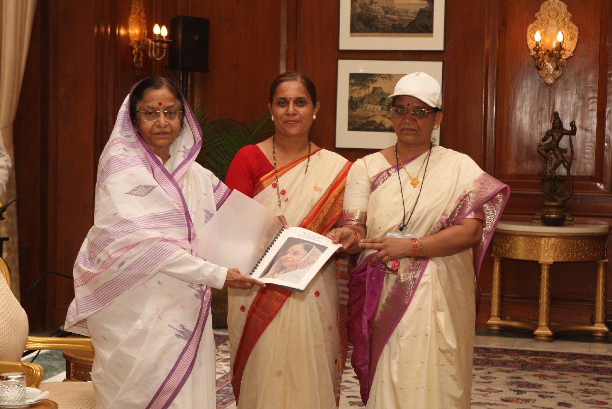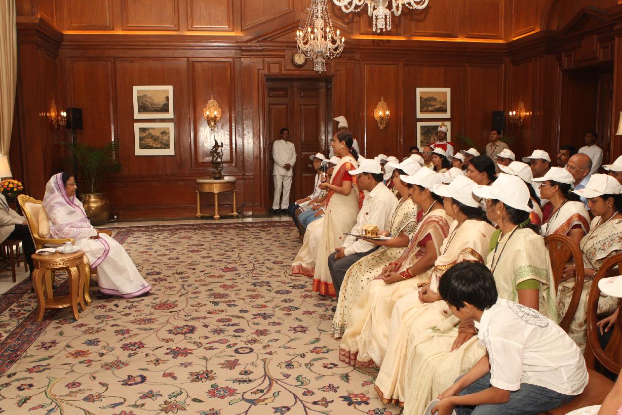 | Caption: | The President of India, Smt Pratibha Devisingh Patil interacting with Smt Manisha Marathe and others at Rashtrapati Bhavan in New Delhi on June 15, 2011 |