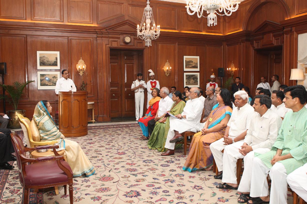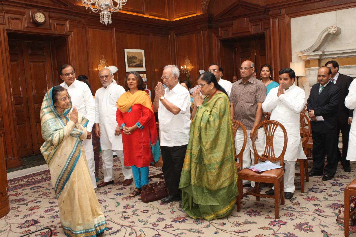 | Caption: | The President of India, Smt Pratibha Devisingh Patil interacting with the Committee of Parliament on Official Language from the Union Home Minister, Shri P Chidambaram and others at Rashtrapati Bhavan in New Delhi on June 01, 2011 |