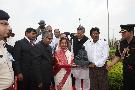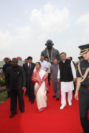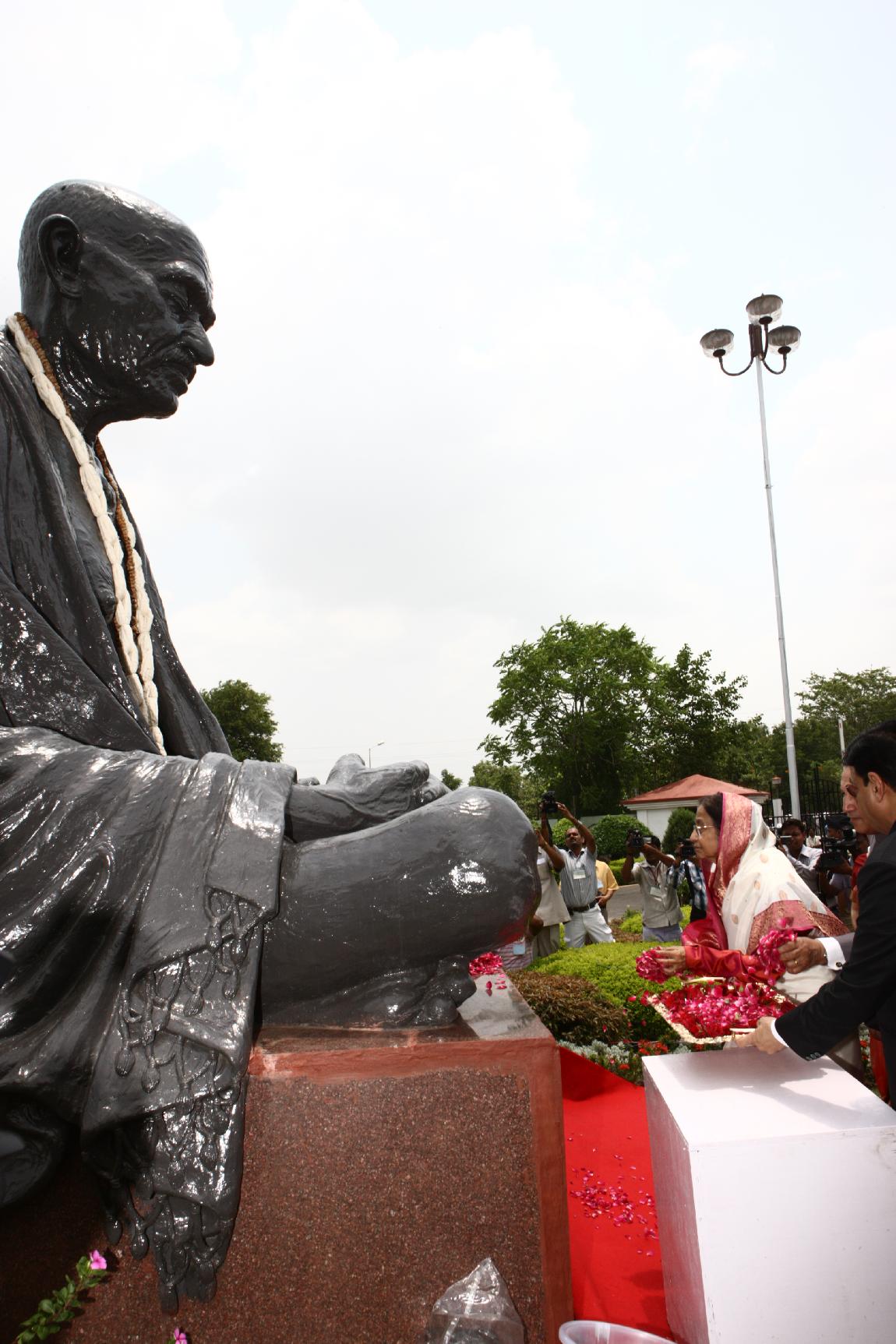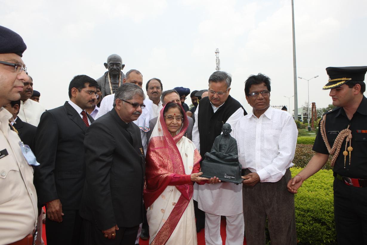 | Caption: | The President of India, Smt Pratibha Devisingh Patil paying floral tributes at the statue of Mahatma Gandhi at the Newly Constructed Building of the Chhattisgarh Legislature Complex at Raipur in Chhattisgarh on June 24, 2011 |